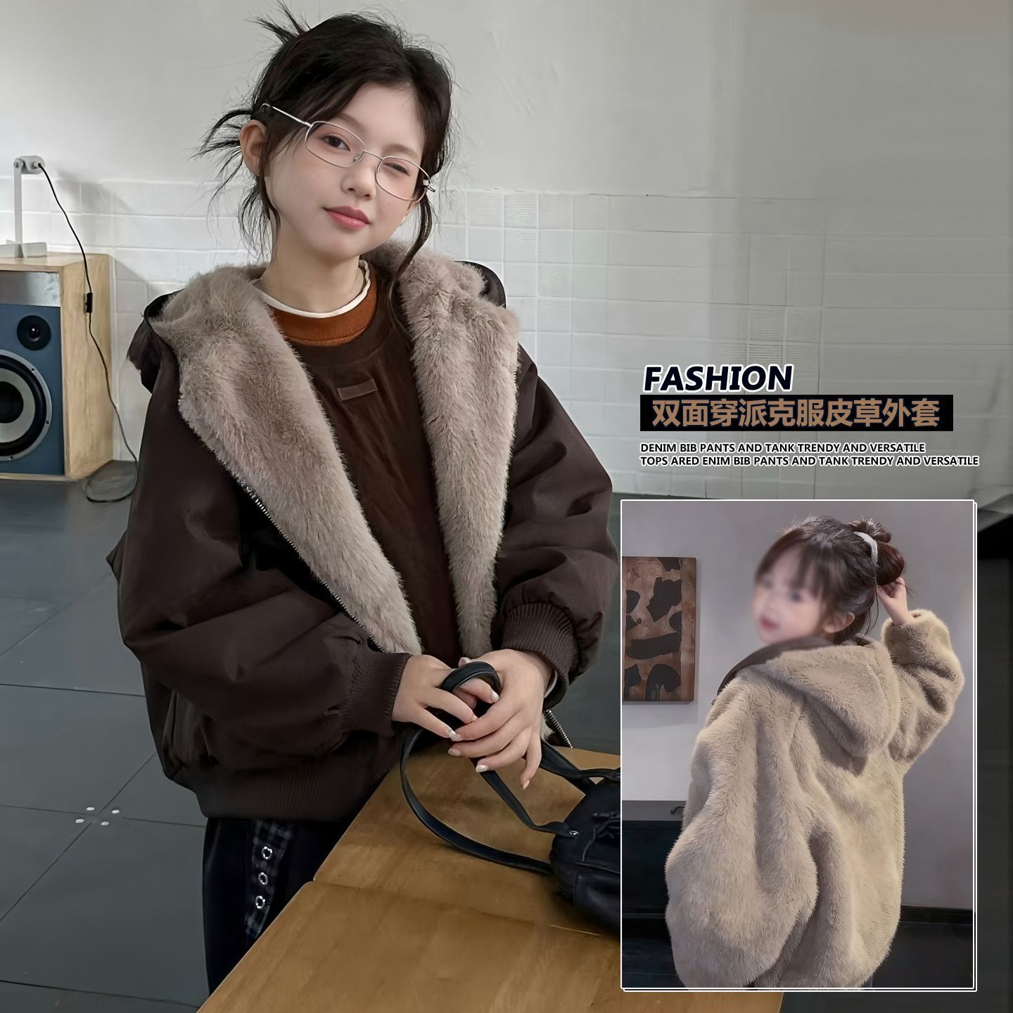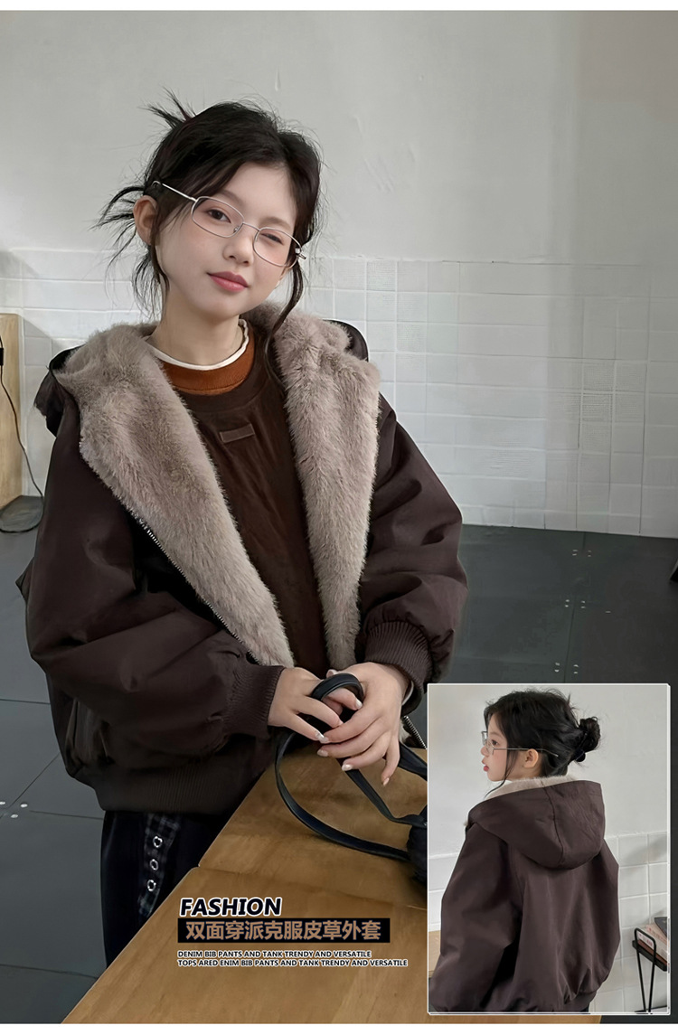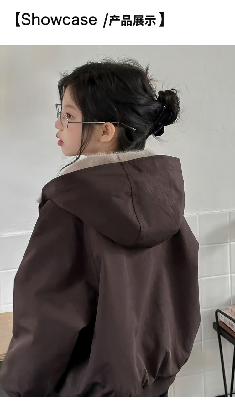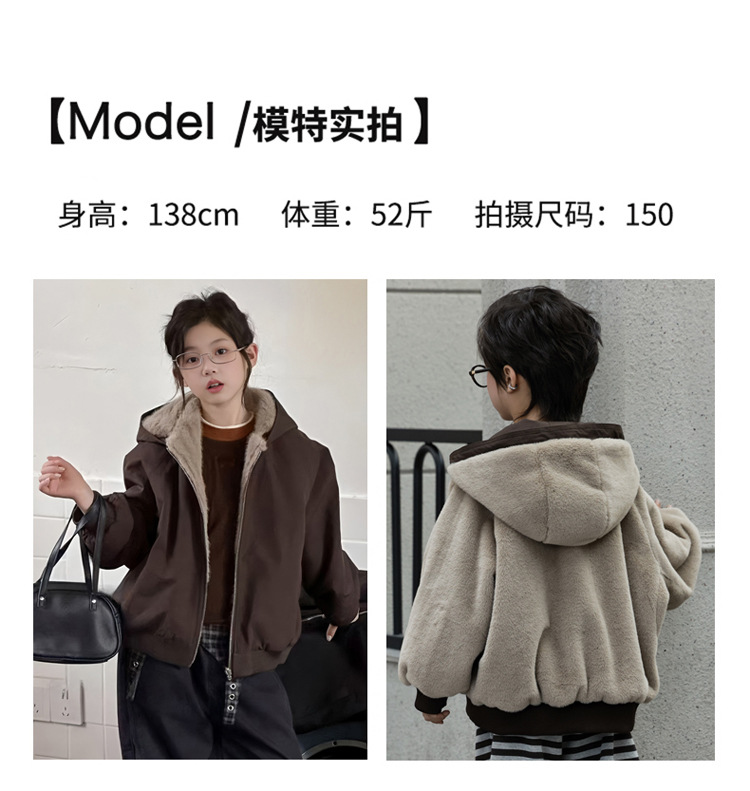 女童双面穿加绒外套2025冬装新款大童韩版洋气休闲保暖皮毛一体潮