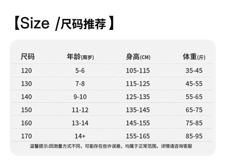 适合身高 120cm,130cm,140cm,150cm,160cm,170cm