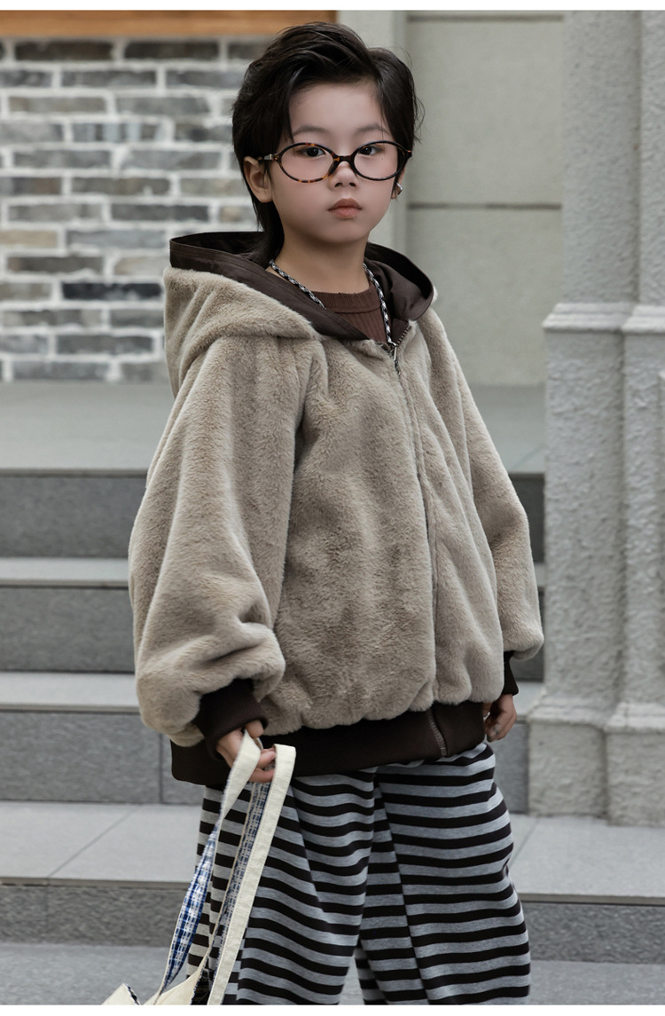 儿童两面穿仿皮草外套2025冬装新款大童女孩时髦洋气加厚保暖外套