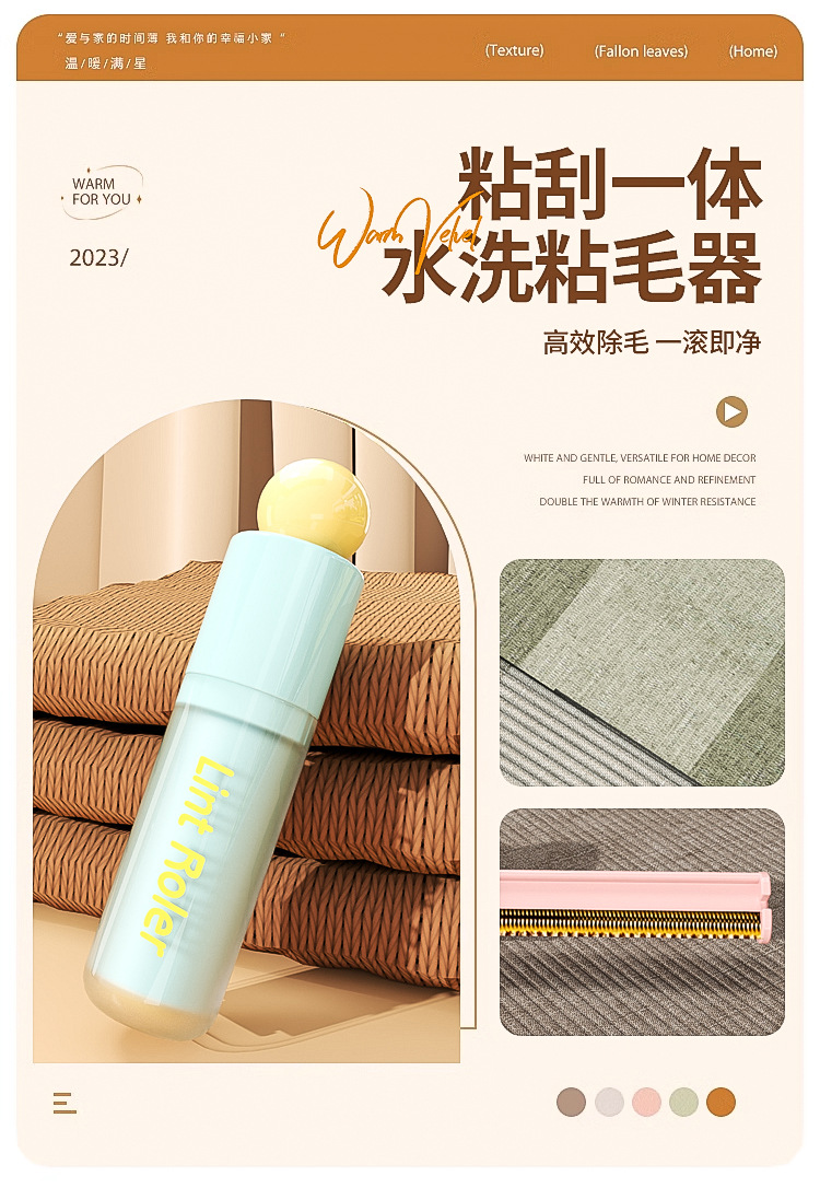 便携式可水洗粘毛器刮毛二合一小型除尘滚高颜值衣物猫毛清理神器