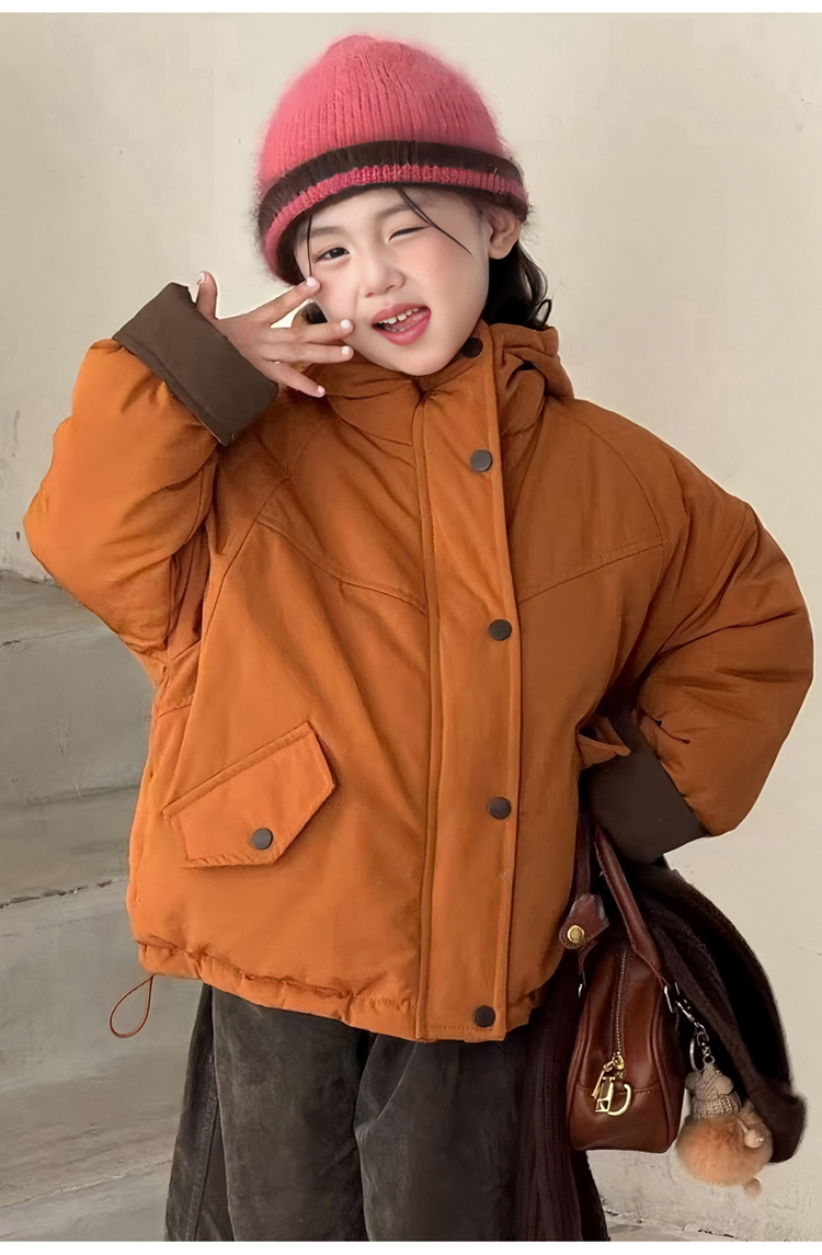 女童羽绒棉加厚棉衣2025冬装新款大头韩版洋气连帽保暖棉服面包服