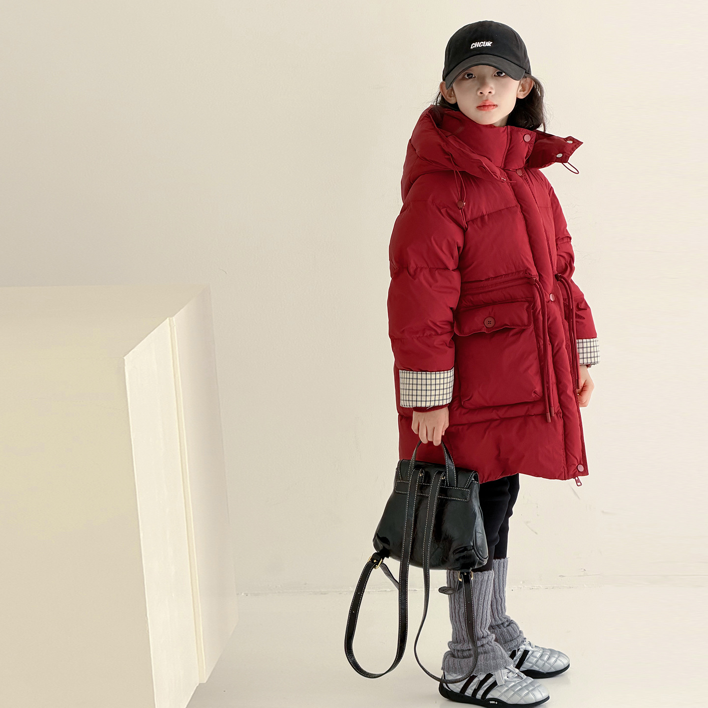 女童羽绒棉棉服2025冬装新款大童红色新年款棉衣中长款棉袄外套潮
