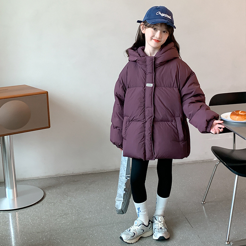 女童洋气短款纯色羽绒服2025冬装新款大童韩版休闲连帽白鸭绒外套