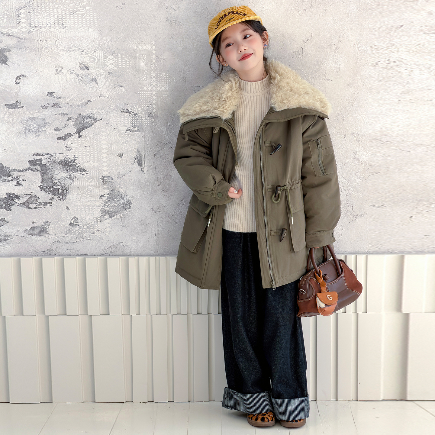女童大毛领加厚派克服2025冬装新款大童韩版时髦工装收腰棉服大衣