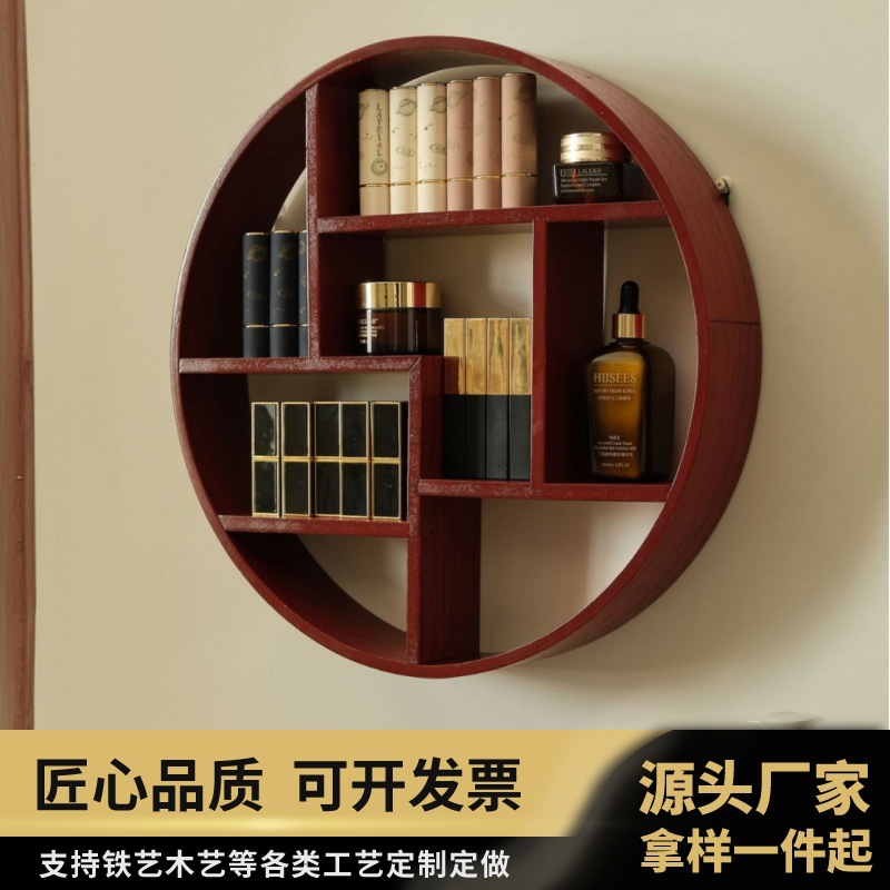 新しい中国風のラウンド壁掛け収納ラックリビングルーム収納玄関装飾壁装飾収納ラックマルチグリッドディスプレイラック