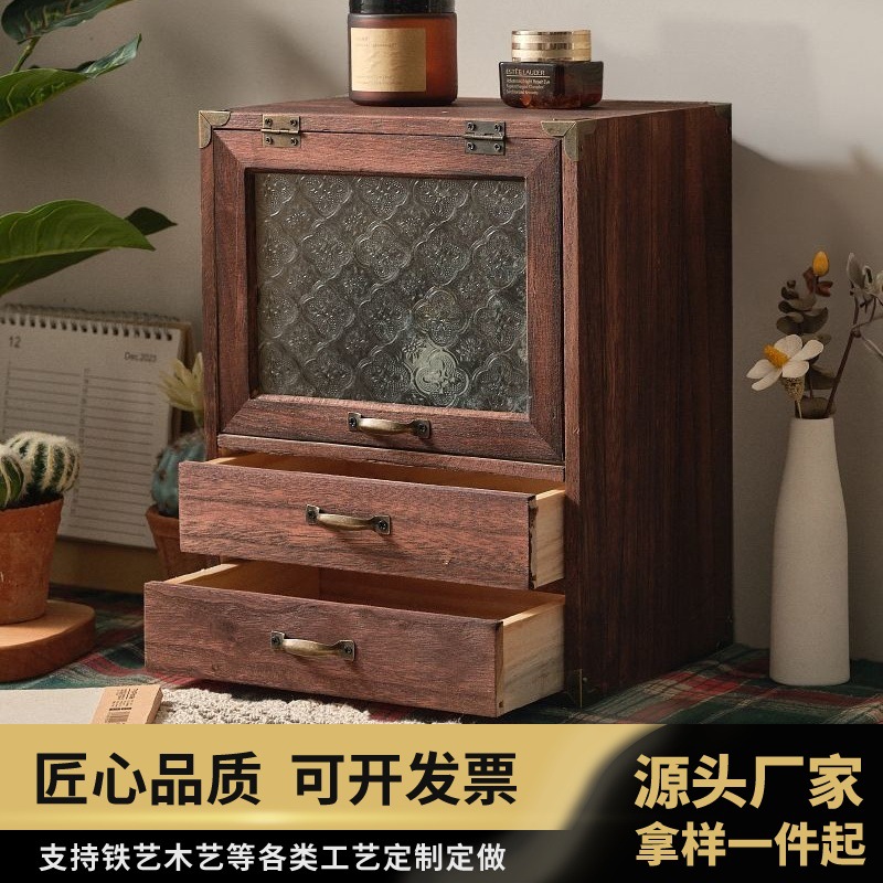 無垢材デスクトップ収納ラック収納ボックス引き出しタイプ雑貨多層整理木製ジュエリー化粧品レトロ