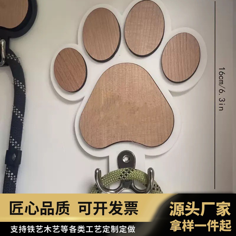 衣服狗绳墙钩宠物店创意墙面装饰壁挂时尚木质脚爪印挂钩创意收纳