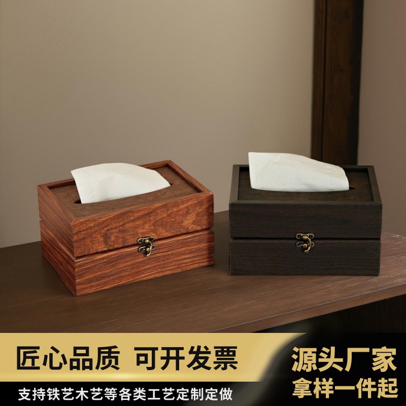 2025新款抽纸盒餐桌复古纸巾盒复古风家用实木木质客厅桌面高颜值