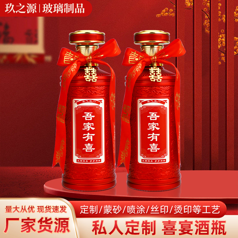 卸売り結婚式喜酒瓶満月祝宴酒瓶赤密封分装酒瓶空瓶1斤入白酒瓶
