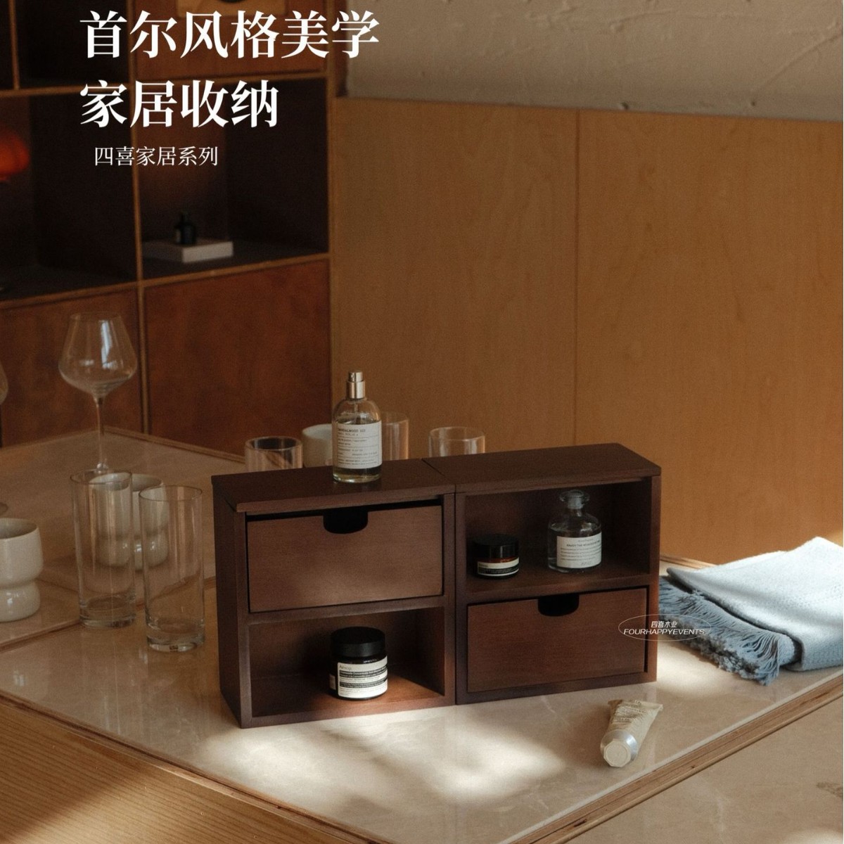 首尔木质家居收纳柜实木化妆品收纳盒浴室整理杂物柜原木