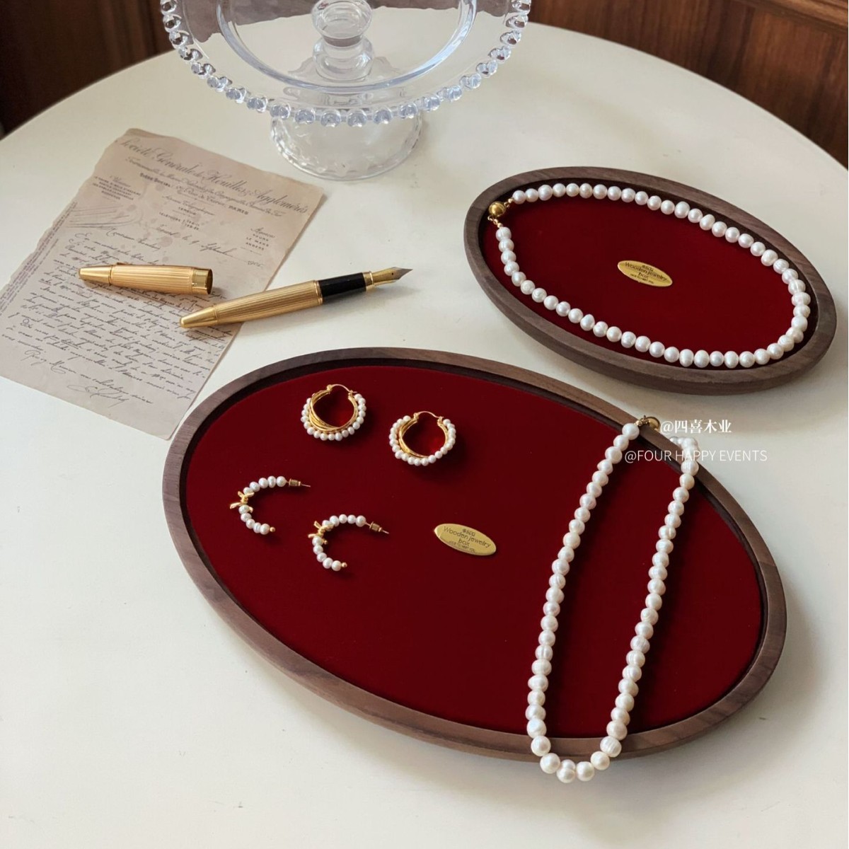 四喜木业小额批发首饰托盘胡桃木珠宝戒指项链收纳饰品展示架道具