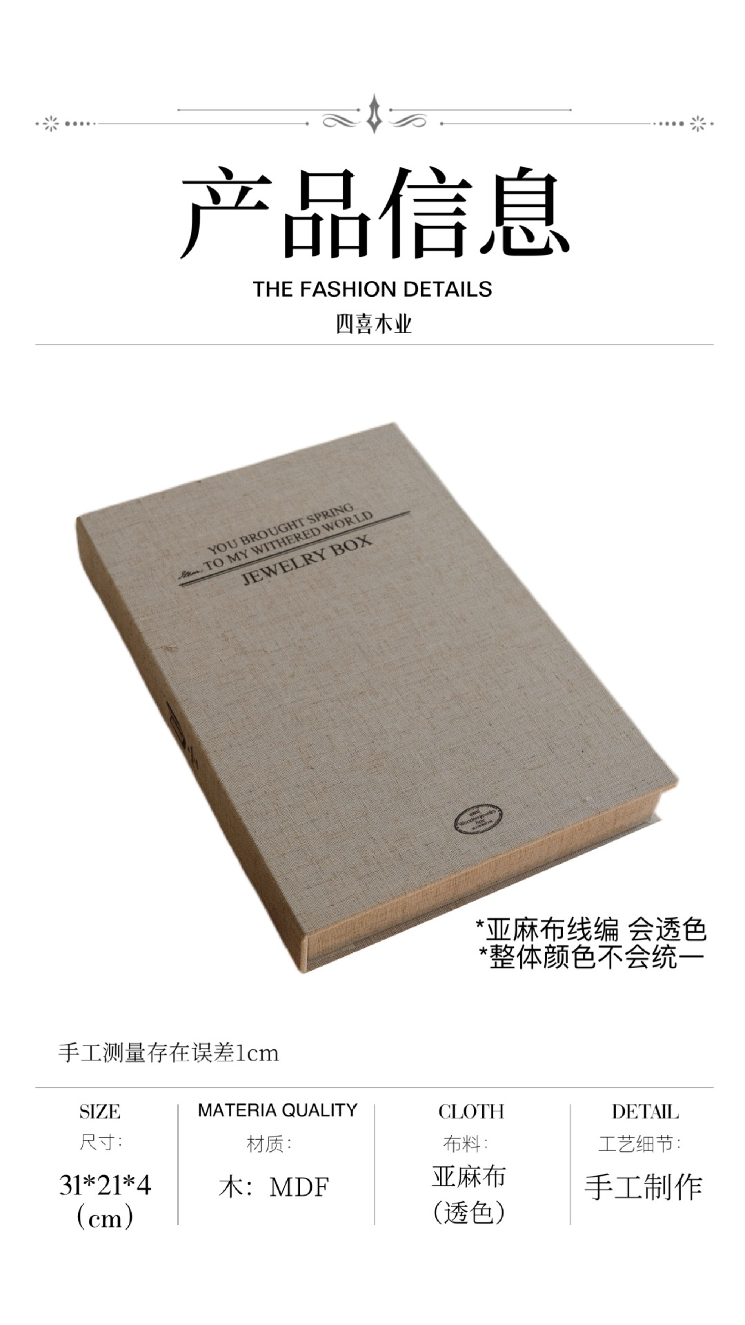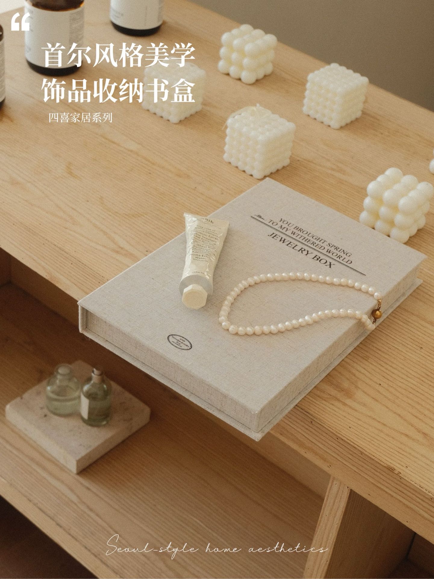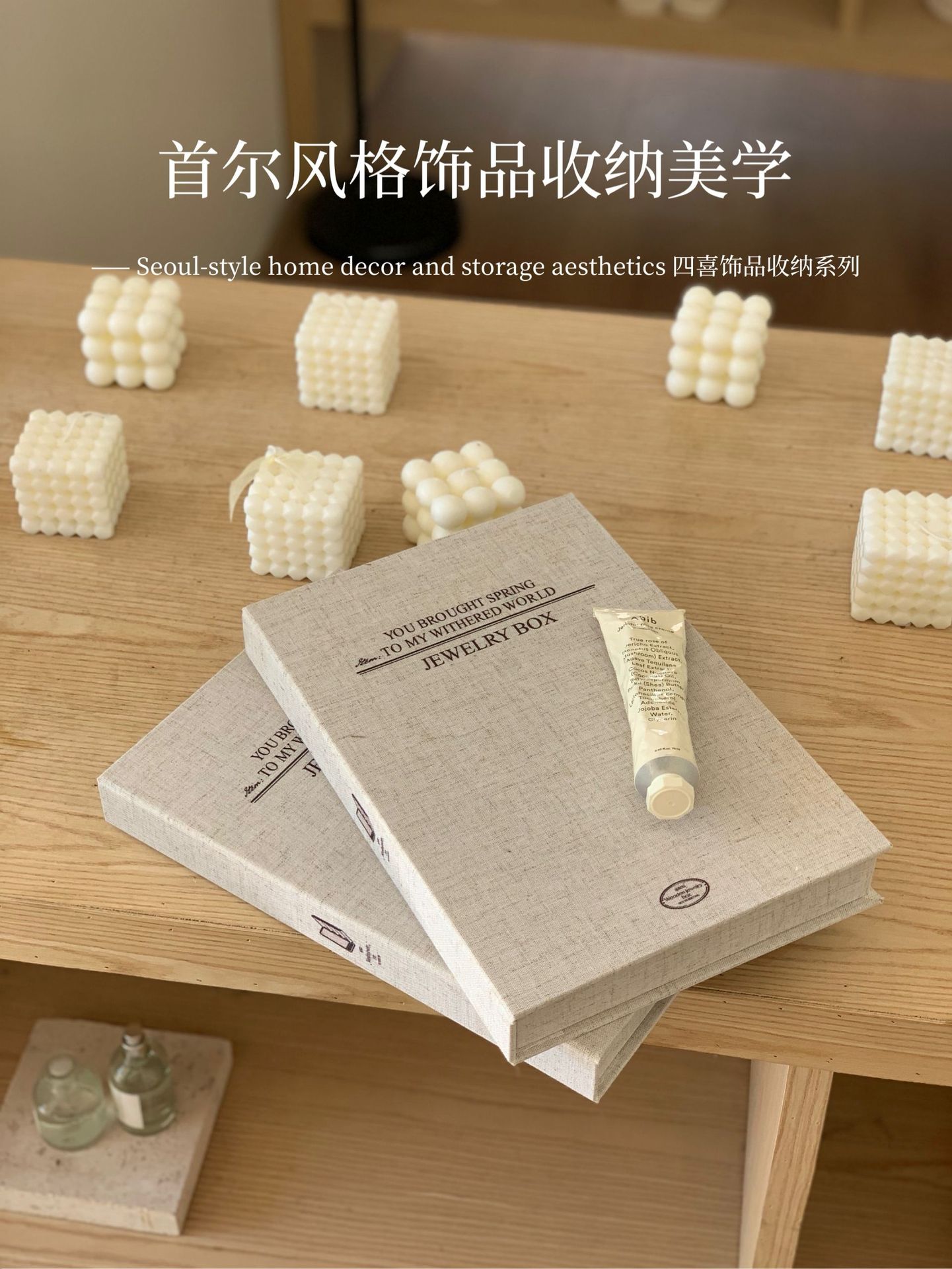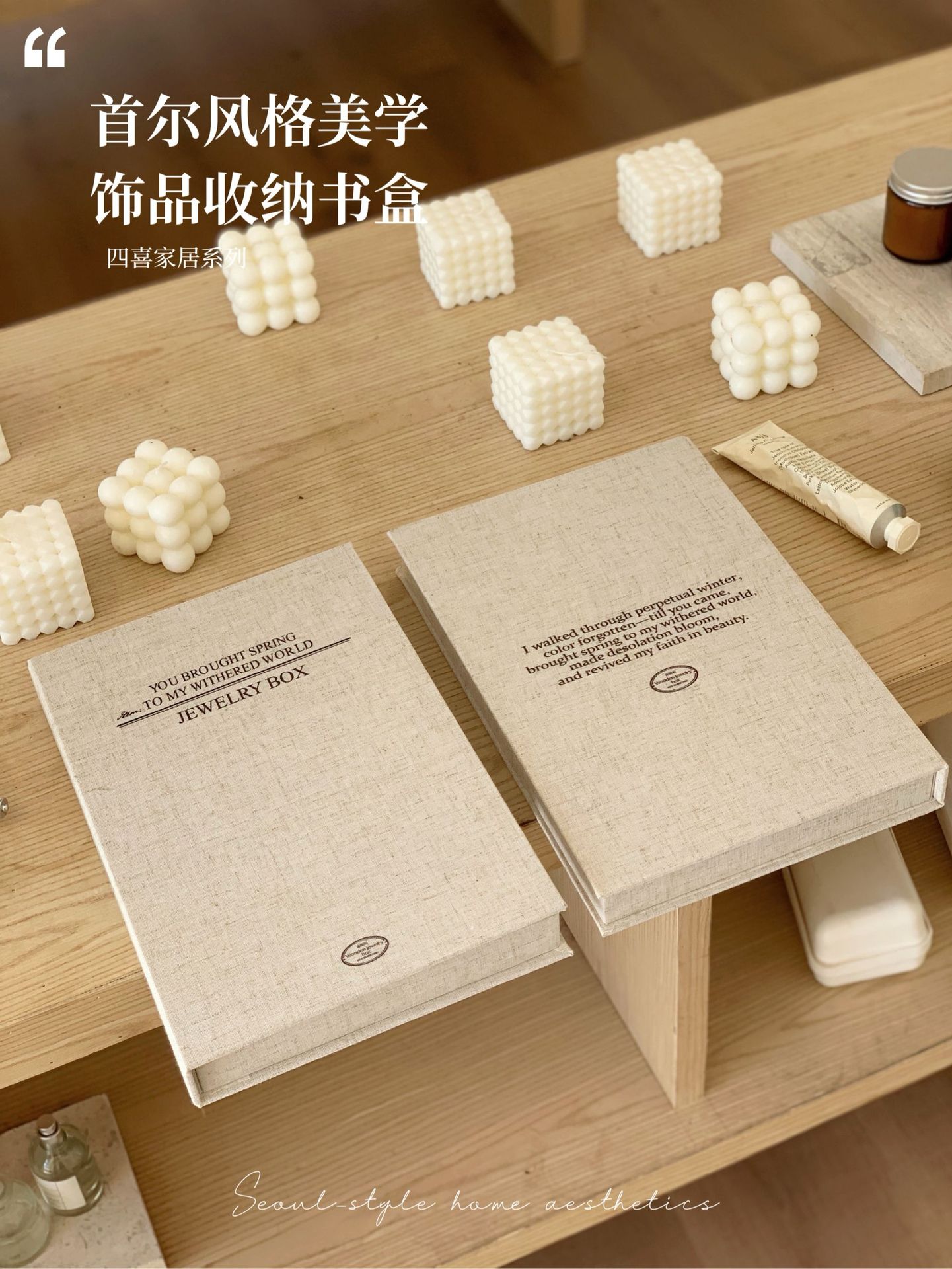首尔英文书本亚麻饰品盒首饰盒陈列展示首饰包装收纳盒木质