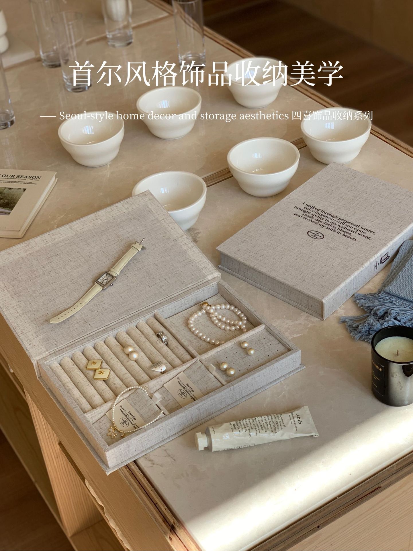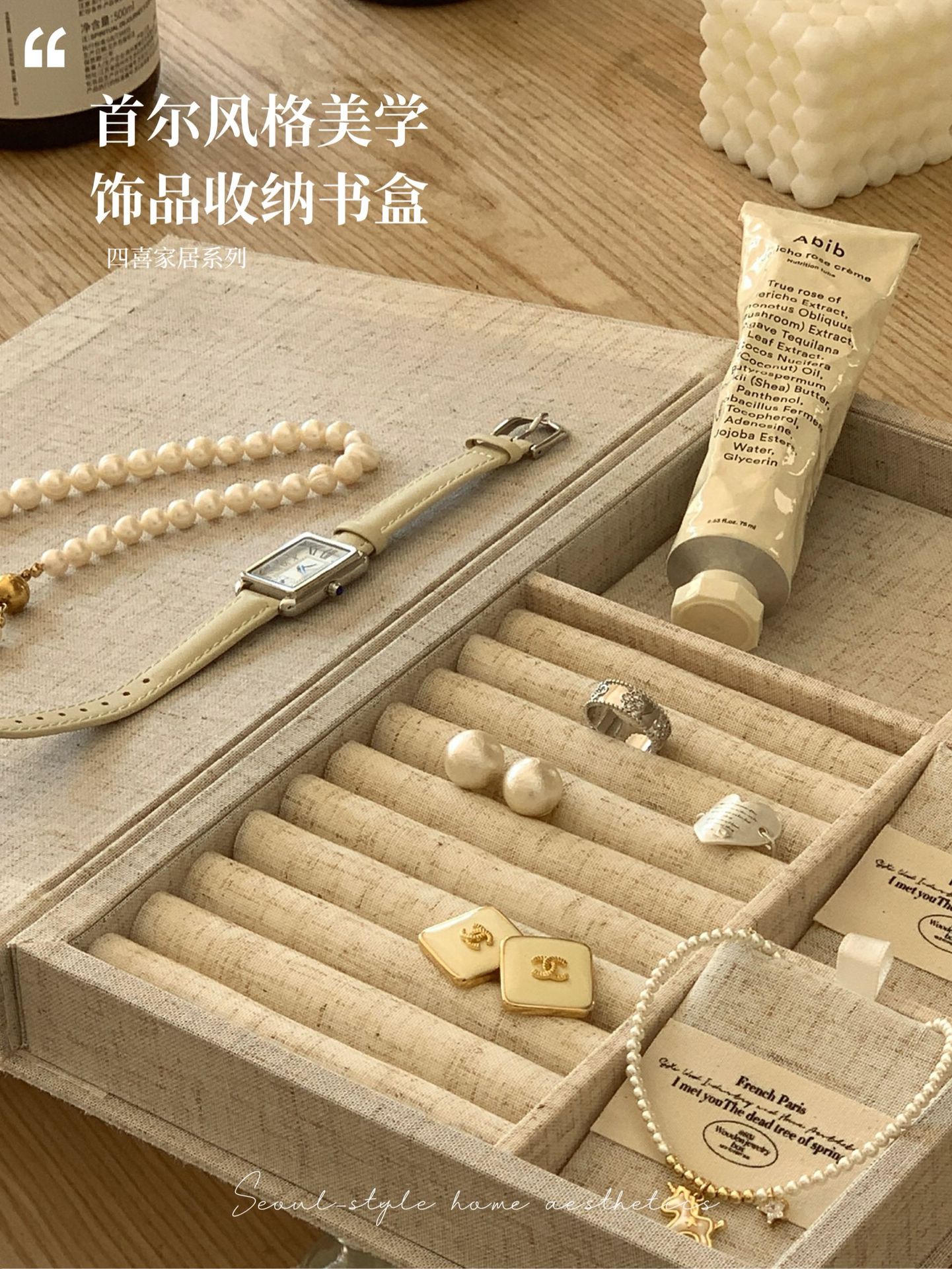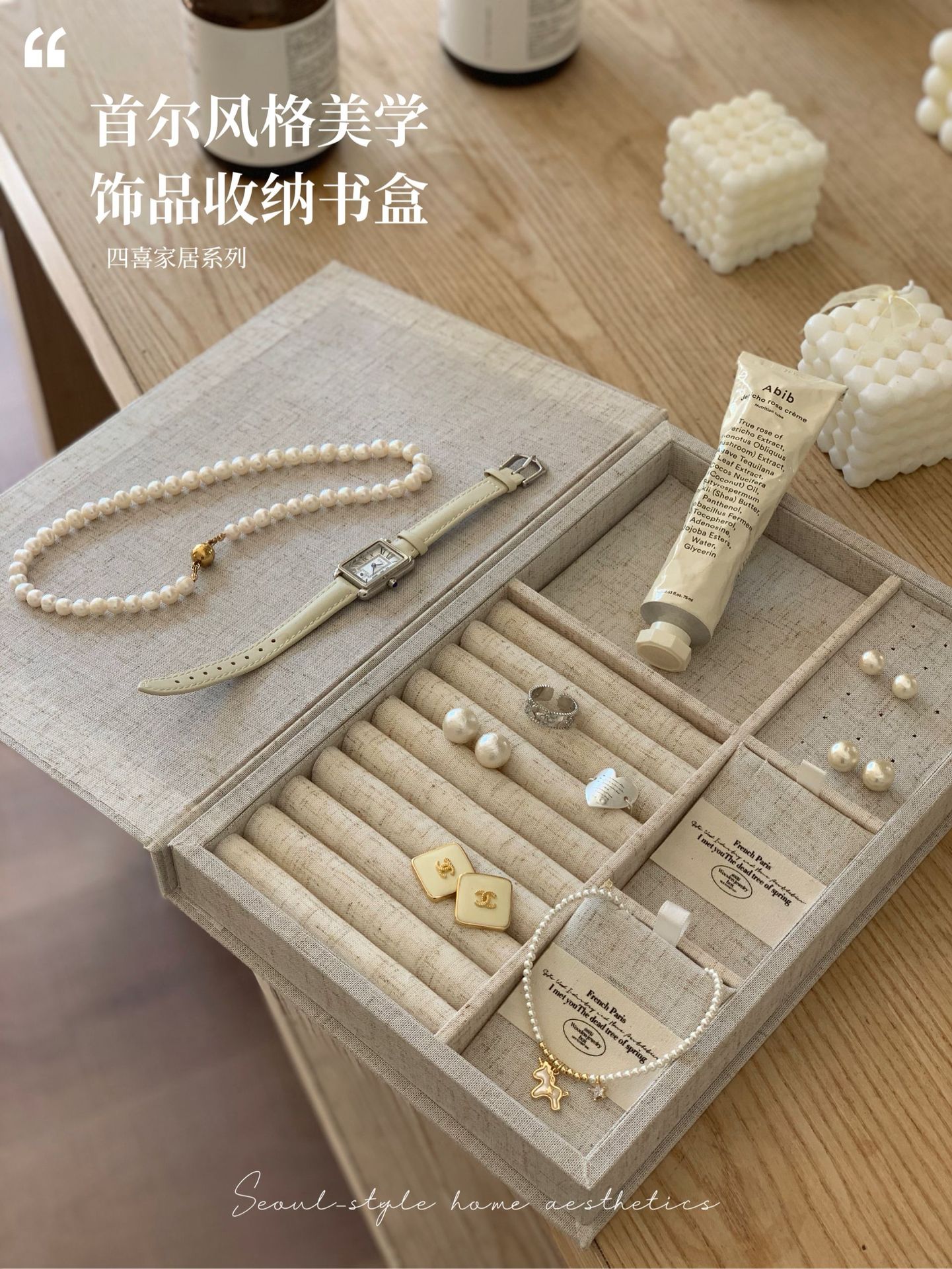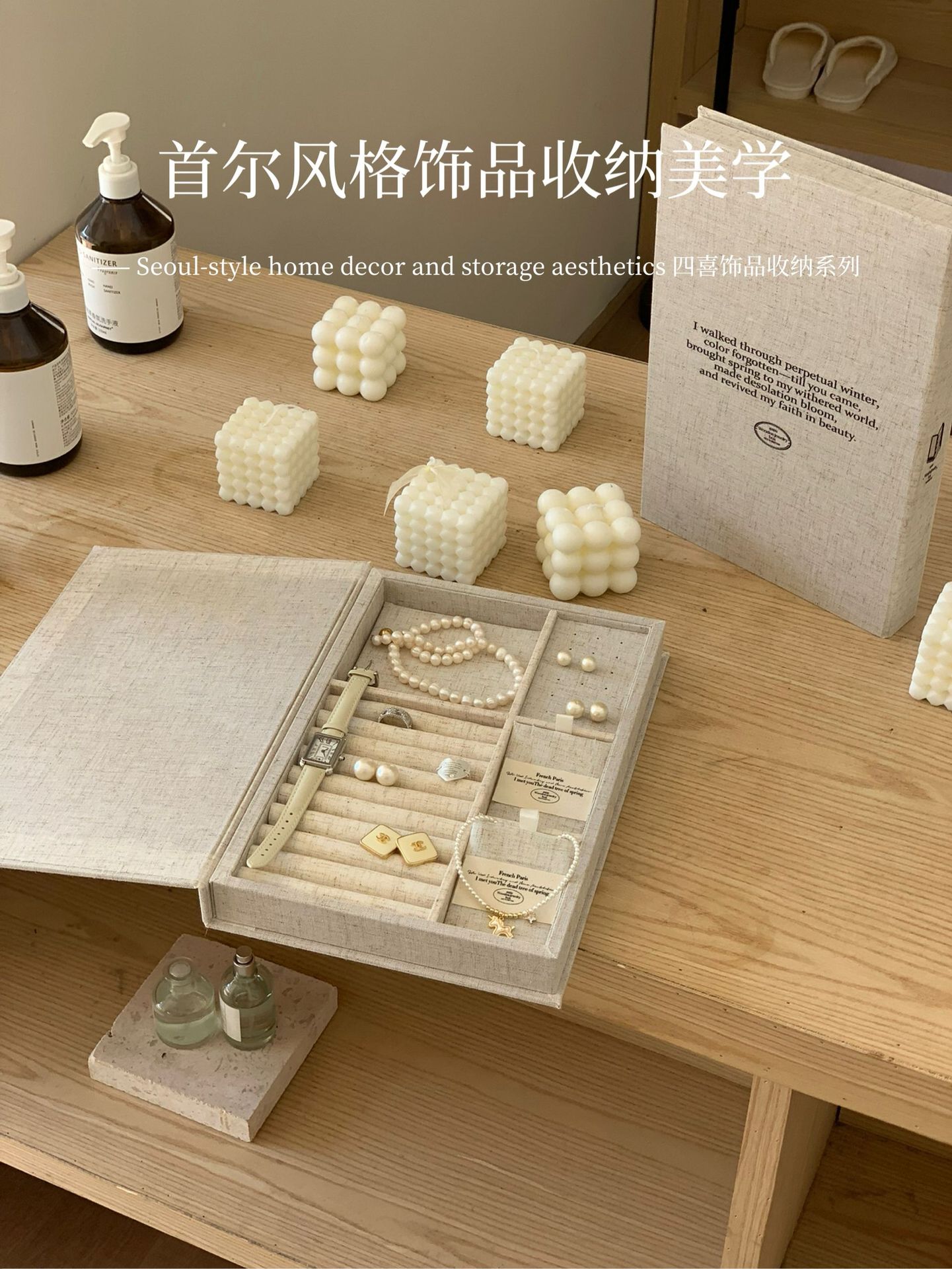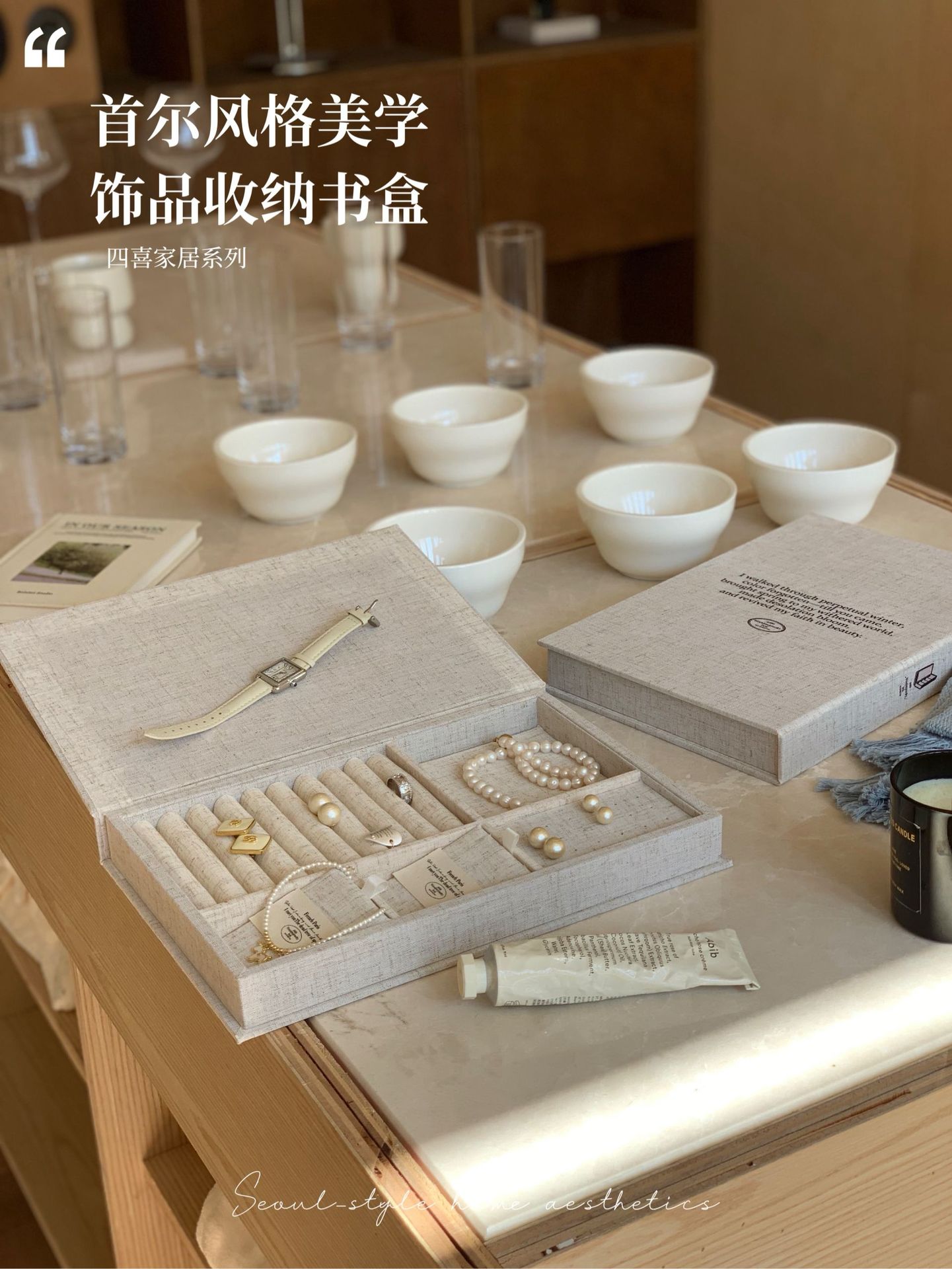 首尔英文书本亚麻饰品盒首饰盒陈列展示首饰包装收纳盒木质