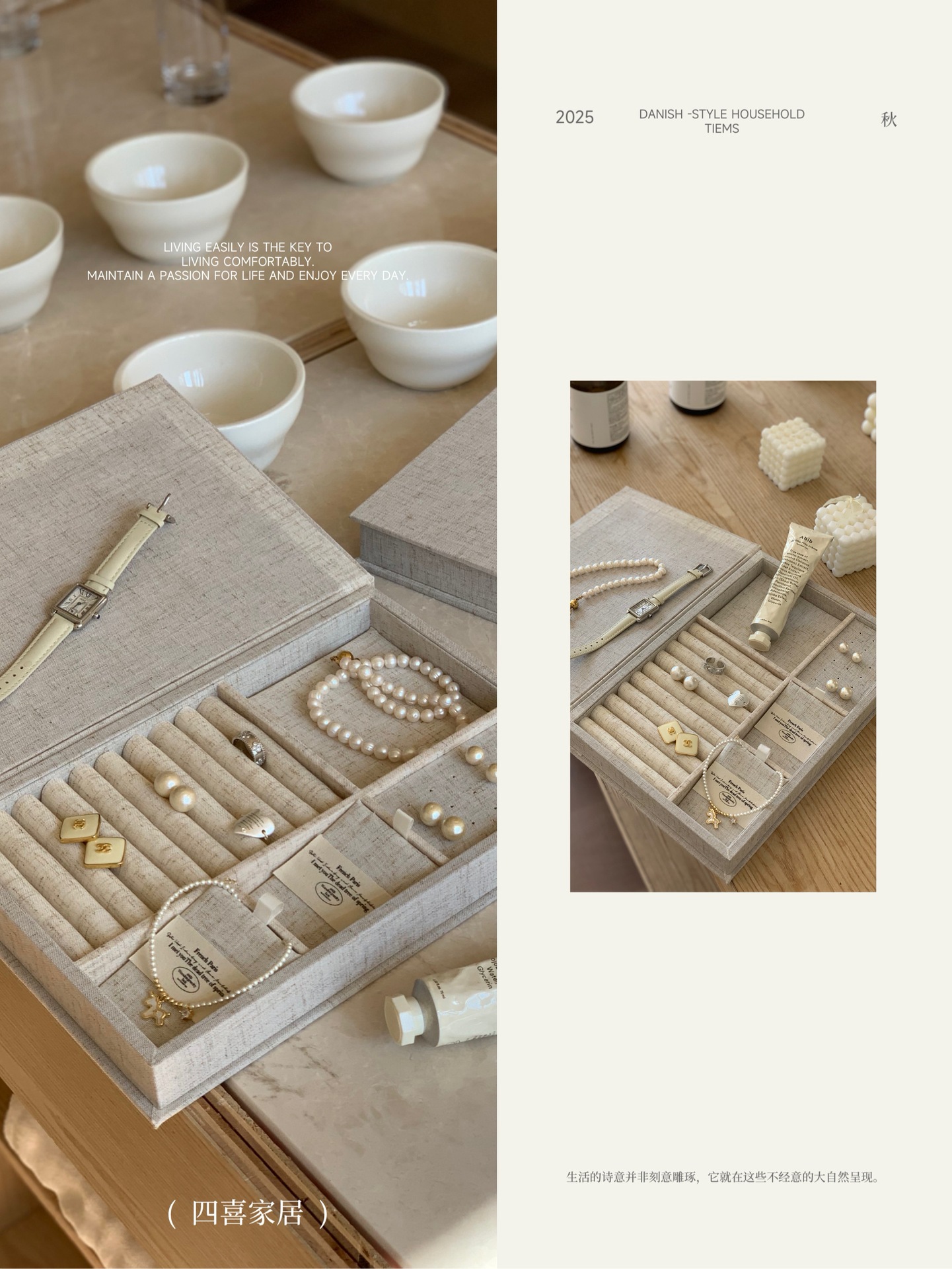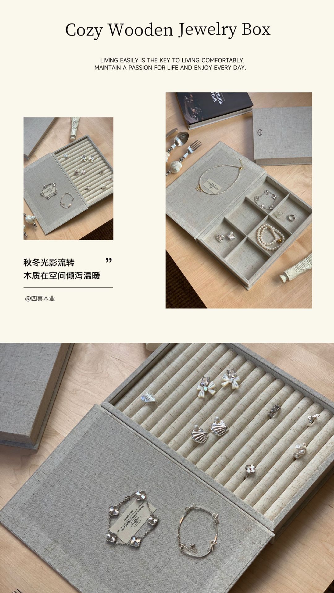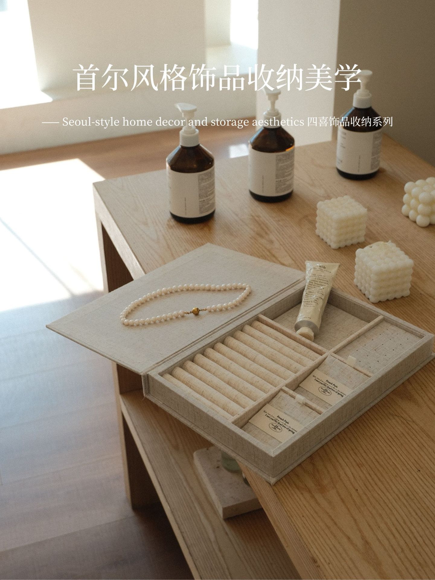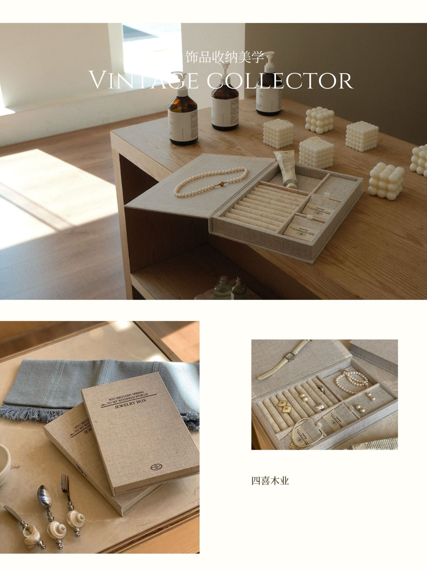 首尔英文书本亚麻饰品盒首饰盒陈列展示首饰包装收纳盒木质