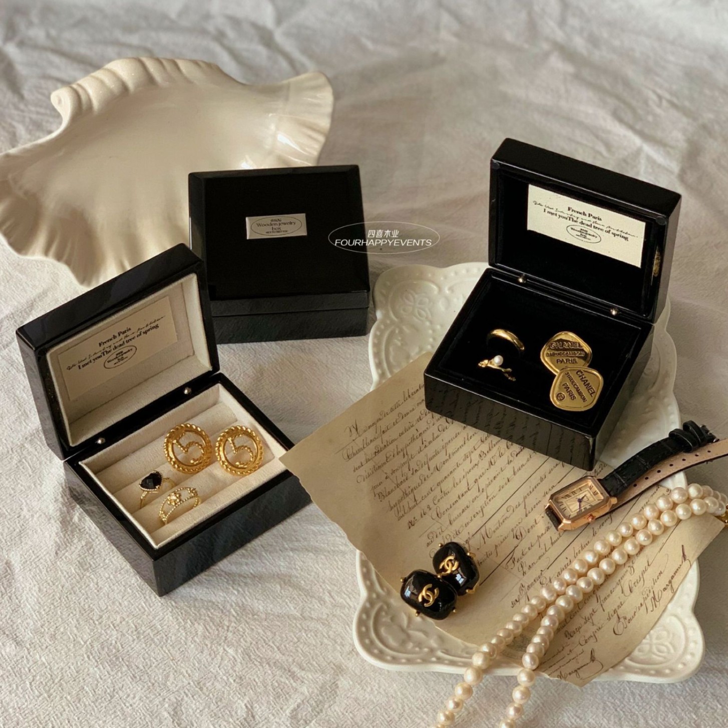 复古黑色烤漆钢琴漆便携迷你戒指盒首饰盒饰品盒珠宝包装盒
