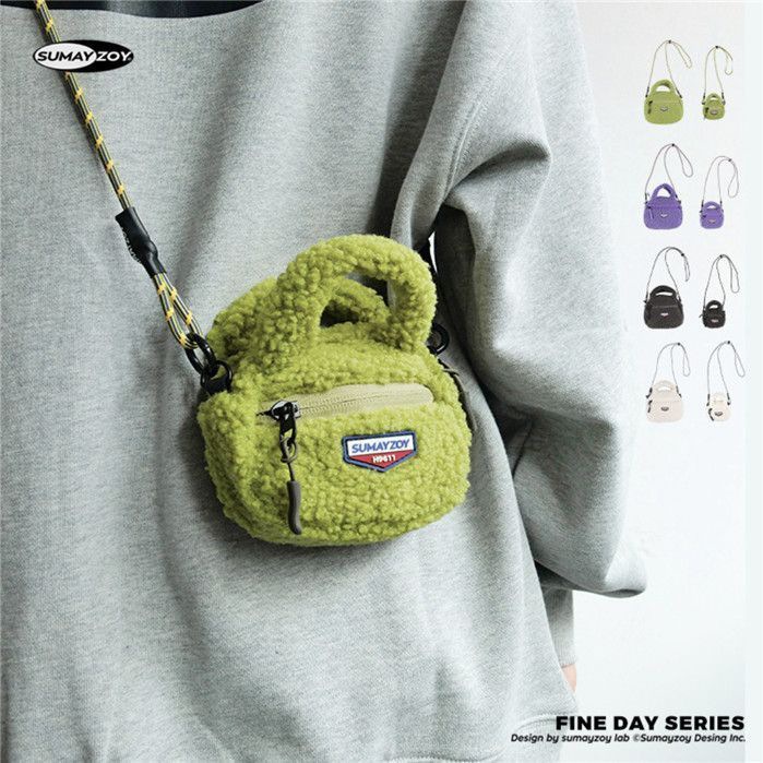 SUMAYZOY毛绒斜挎包女可爱秋冬挂件装饰马卡龙色迷你手提小包包