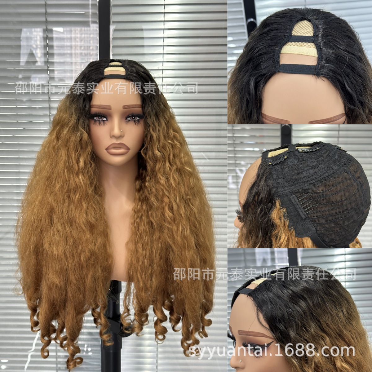 Afro Curly V Part Wig Synthetic 22 inch Bouncy Curls Wigs