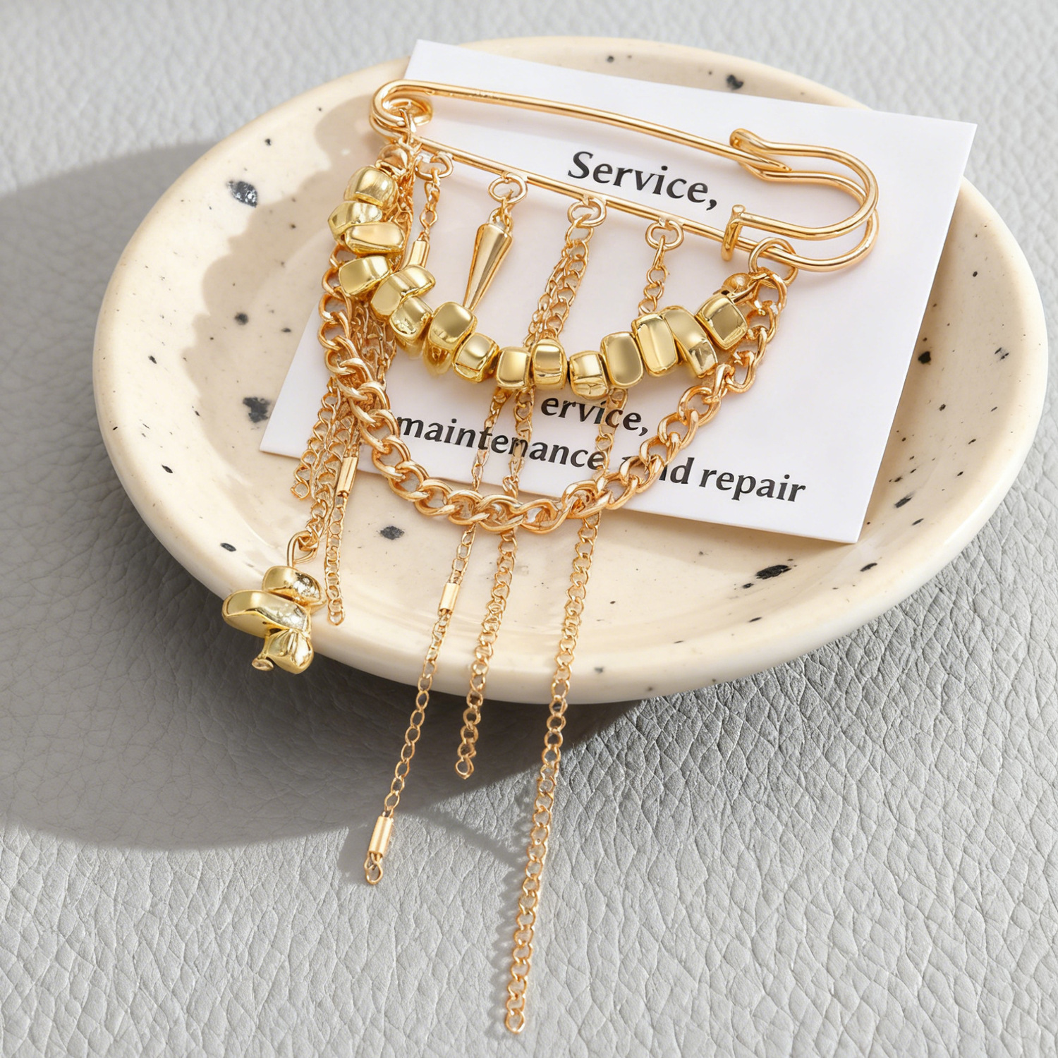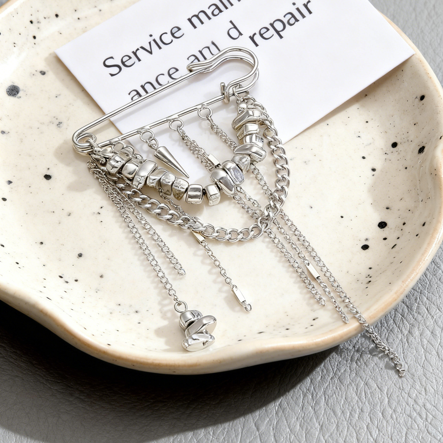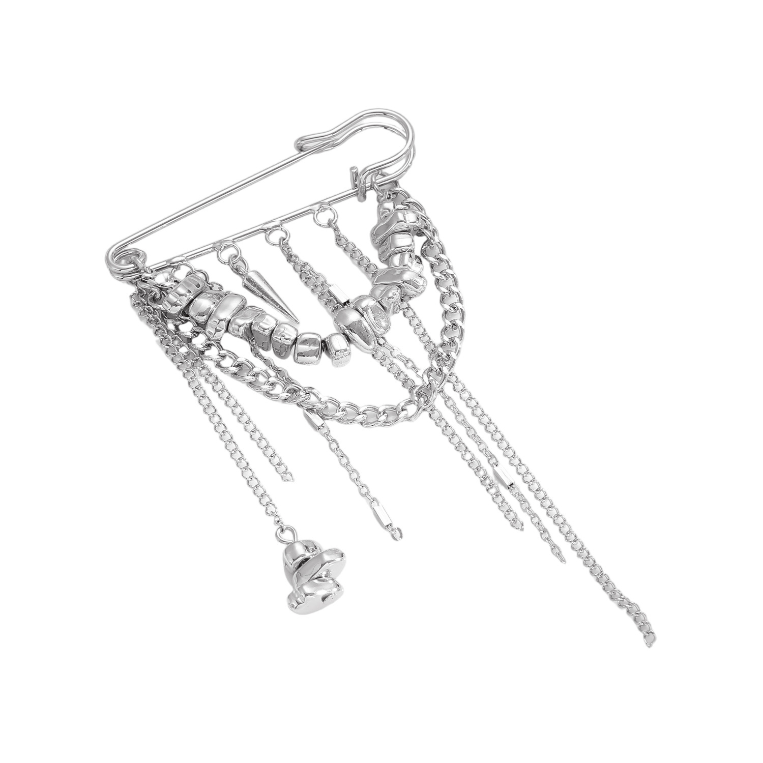 欧美跨境链条流苏铆钉碎银子胸针CCB碎银回形针别针西服配饰女