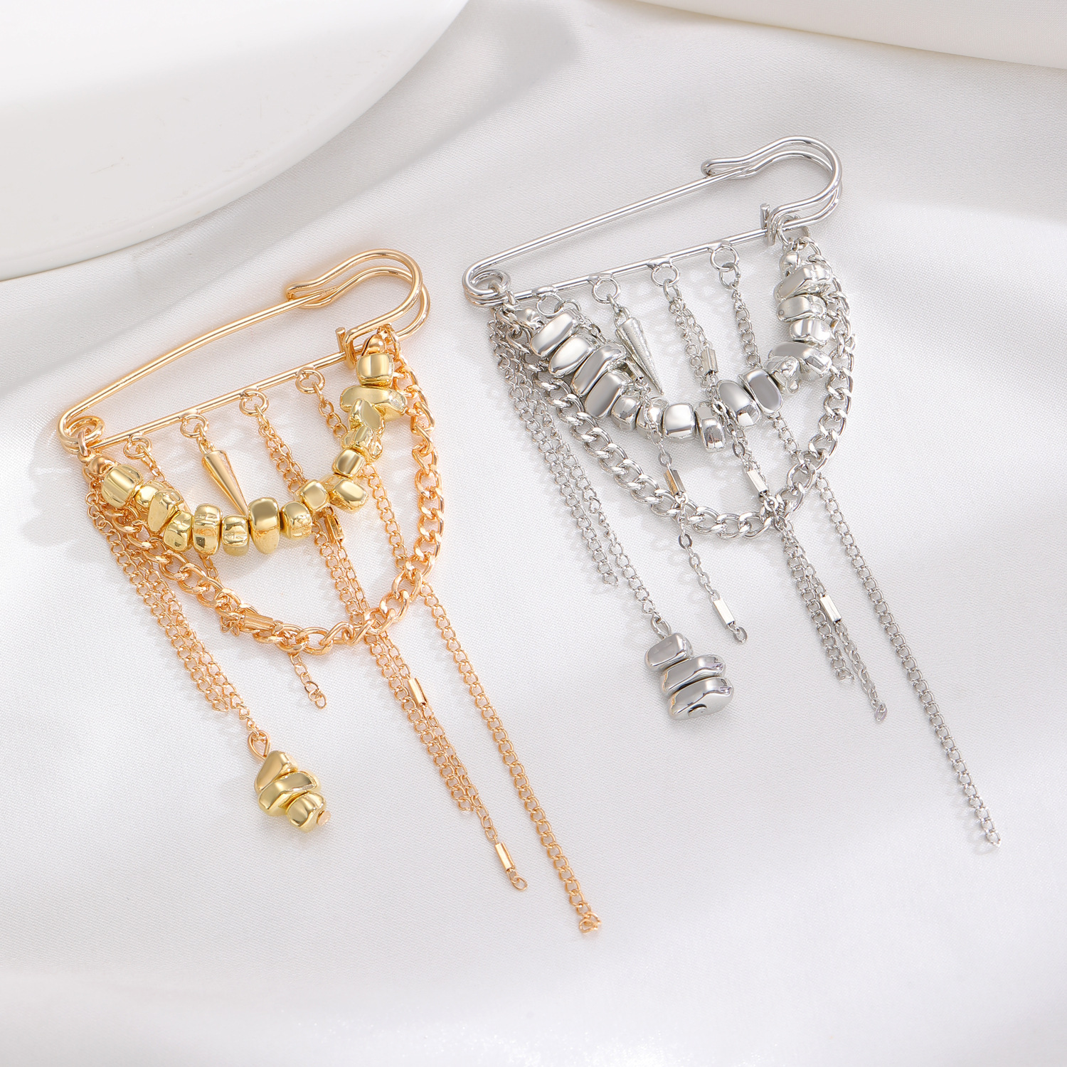 欧美跨境ins风不规则串珠流苏别针裤脚链 个性通勤多功能胸针配饰