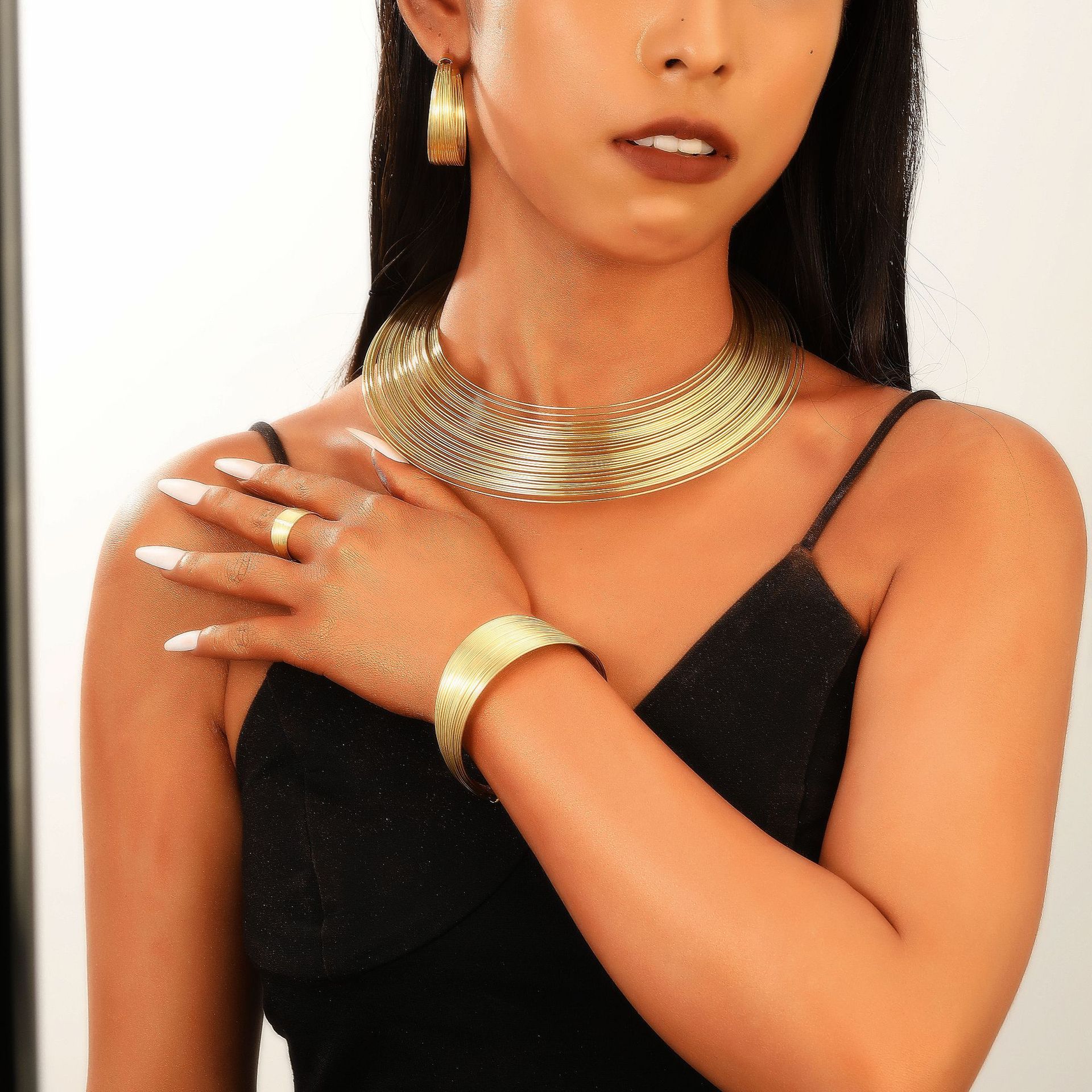 欧米の国境を越えたアフリカのナイジェリアのパンクchocker首の首輪のイヤリングのブレスレットの指輪のアクセサリーのスーツの女性