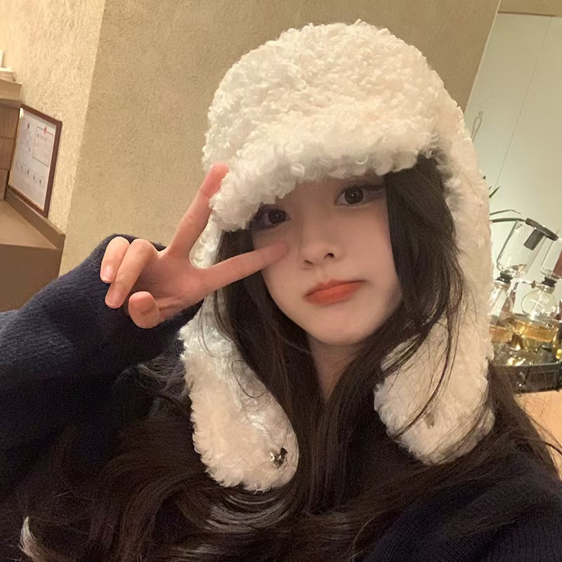秋冬日系纯色羊羔毛绒加厚保暖护耳雷锋帽子女百搭骑车防风滑雪帽