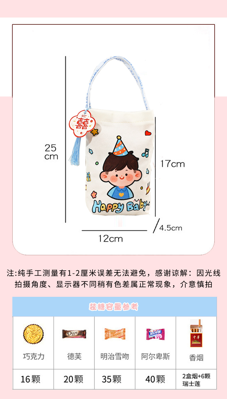 宝宝满月礼物生日包装手提糖果袋喜糖小礼品袋周岁百天伴手礼喜蛋