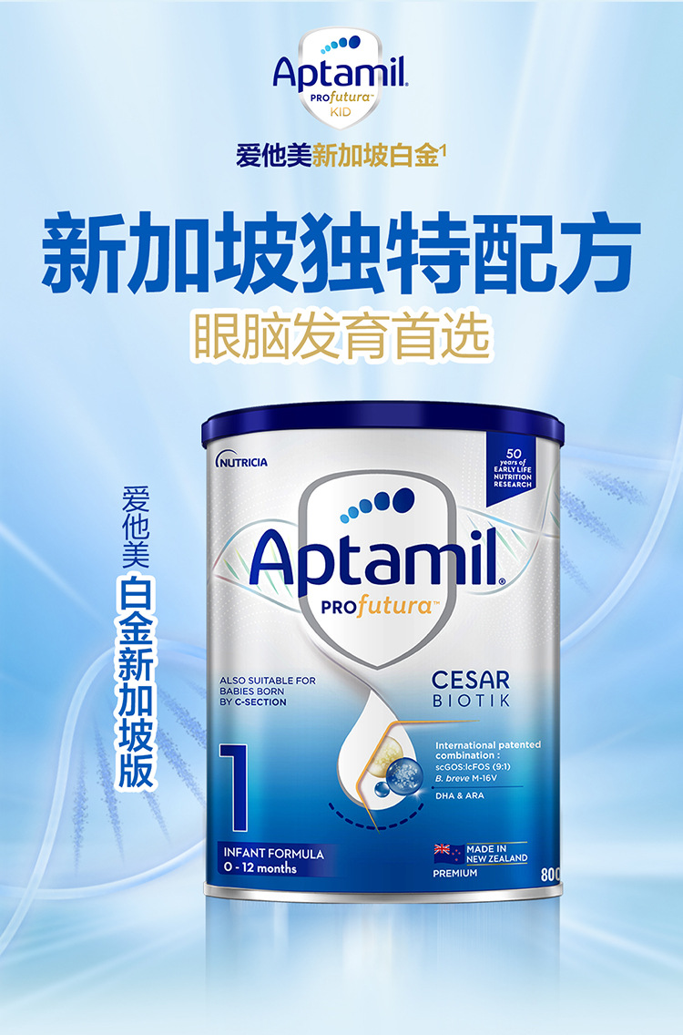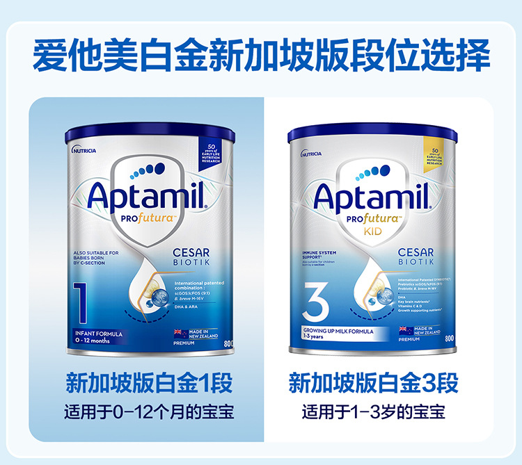 澳洲爱他美Aptami白金版婴儿奶粉1段2段3段 新加坡版 800g