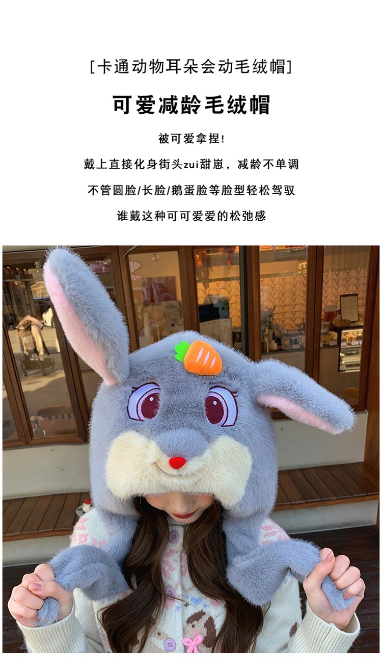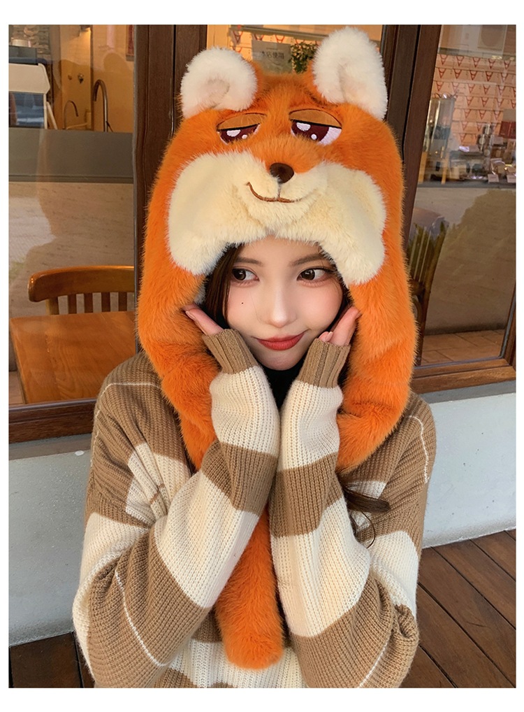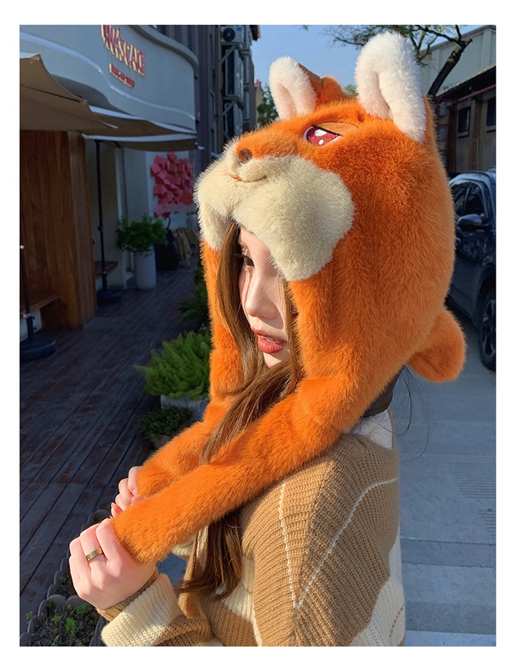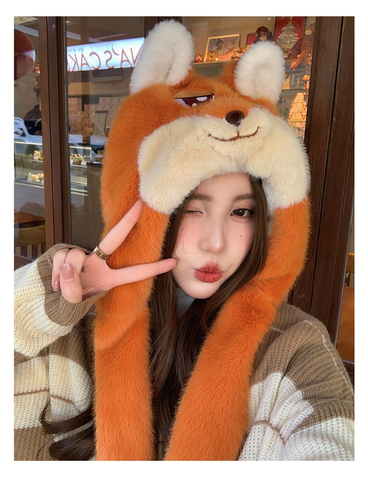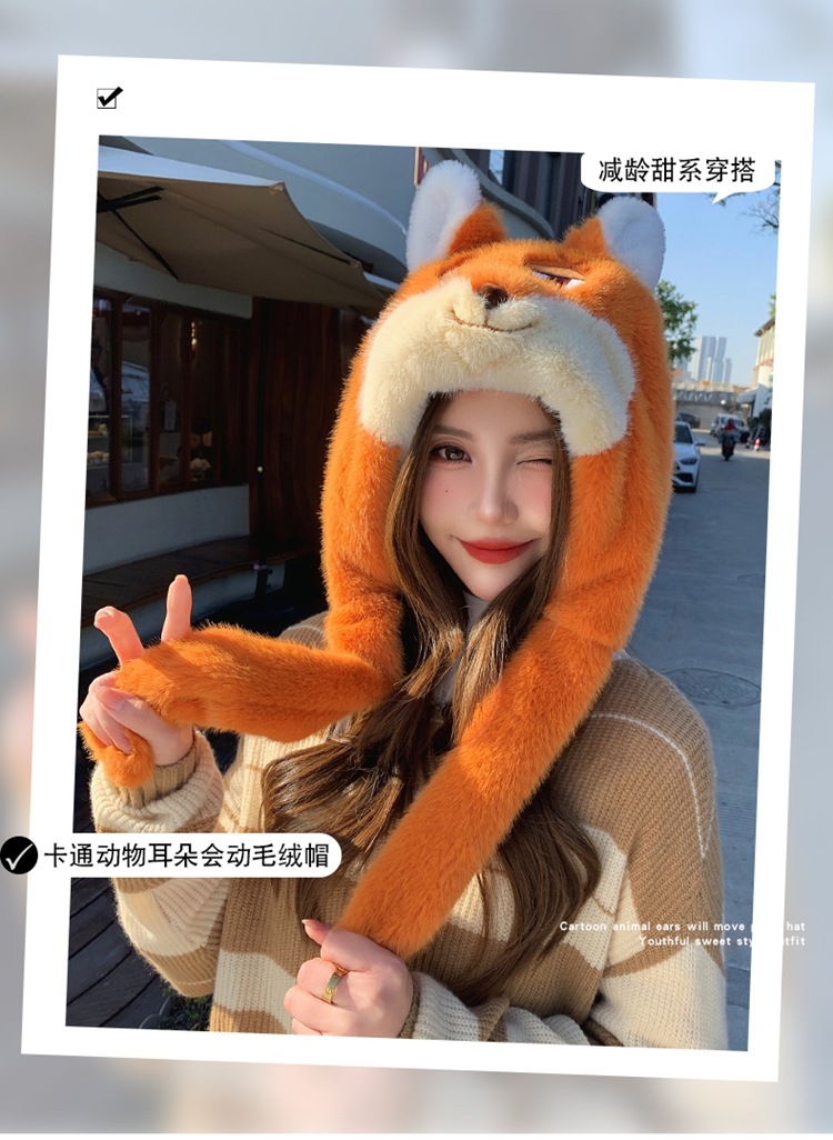 可爱卡通尼克狐狸毛绒帽子冬季加厚保暖防寒耳朵会动护耳帽雷锋帽