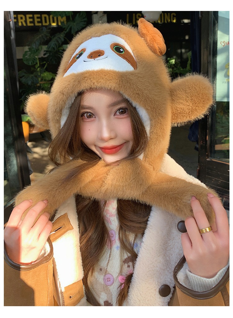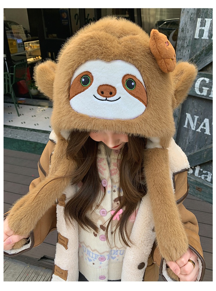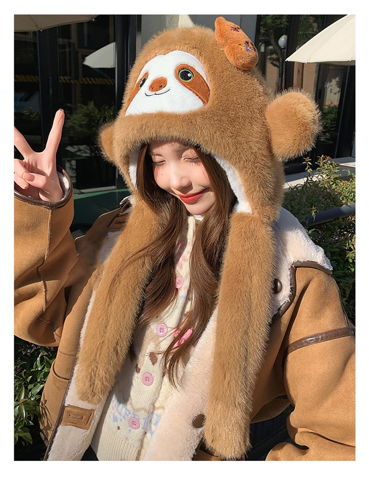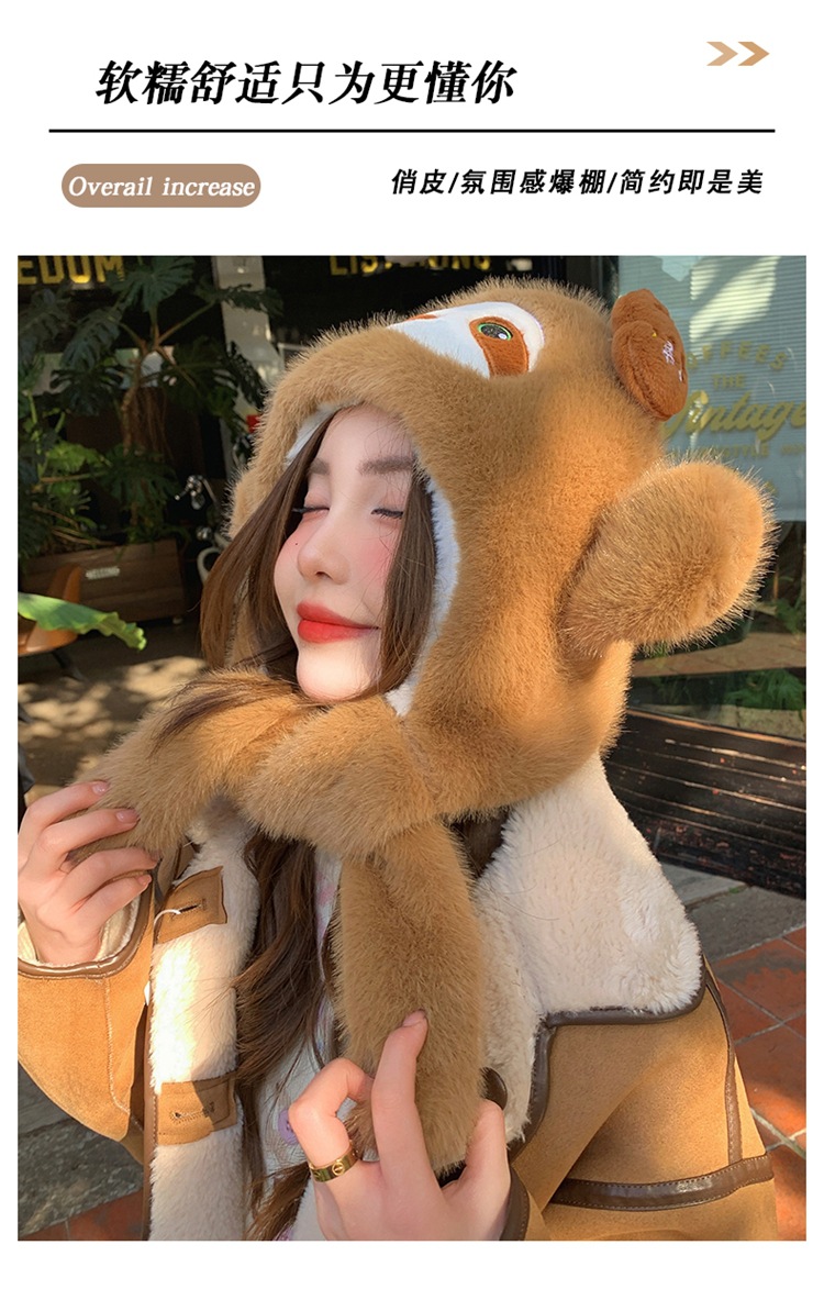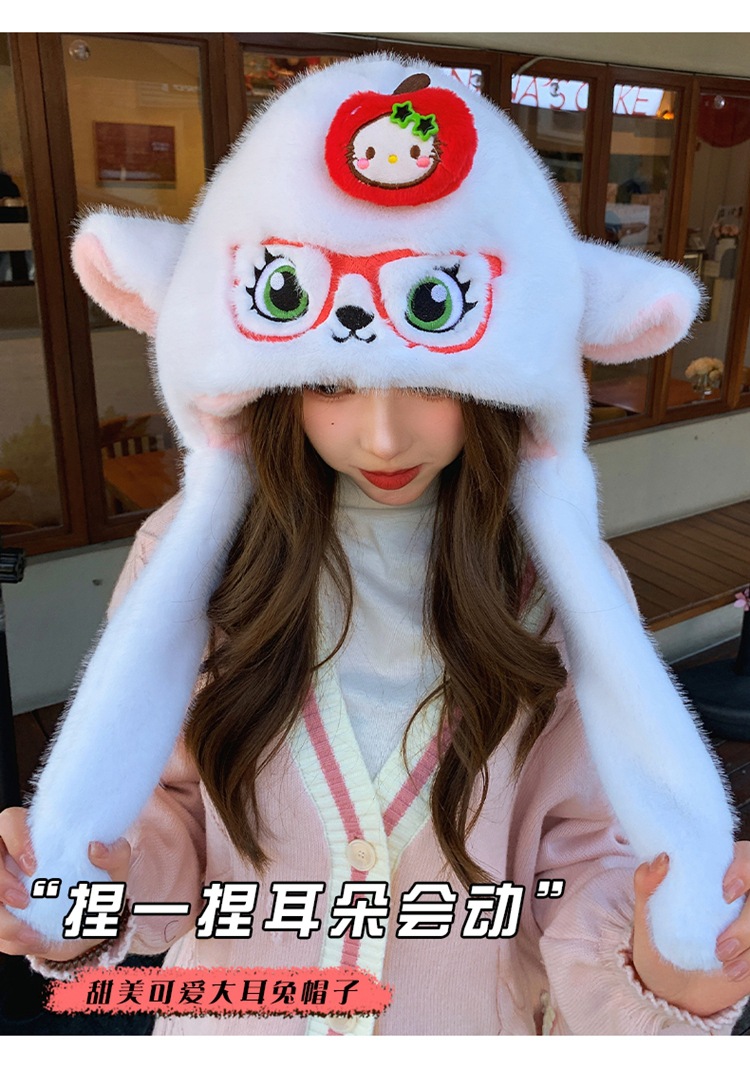 可爱卡通尼克狐狸毛绒帽子冬季加厚保暖防寒耳朵会动护耳帽雷锋帽