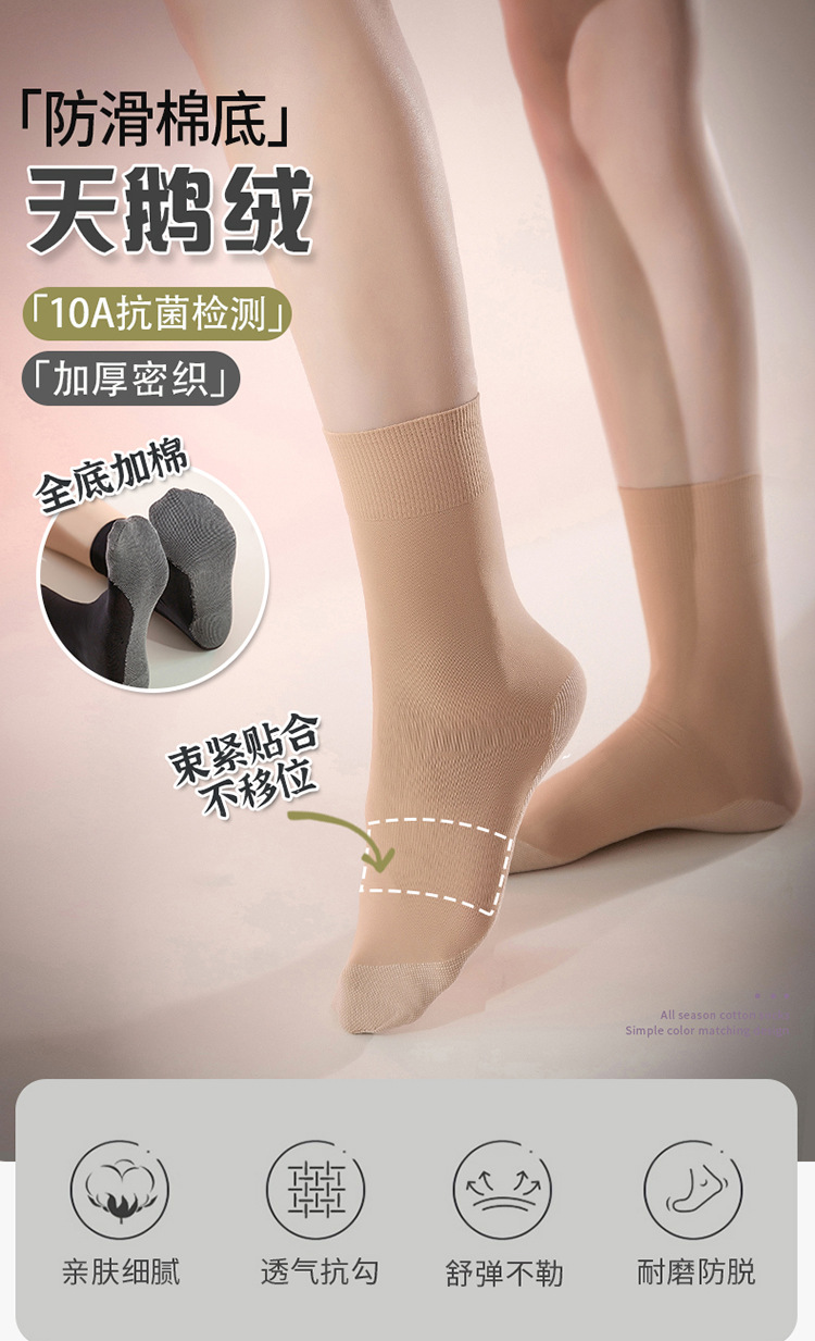 永春2417天鹅绒高弹防滑棉底加厚短袜秋冬女士加长30厘米保暖丝袜