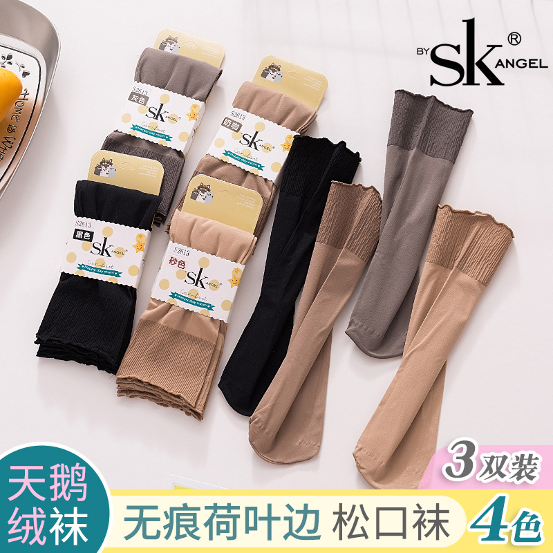 SK2613天鹅绒宽松袜口老人孕妇大弹力短袜不勒脚中筒袜春秋不透肉