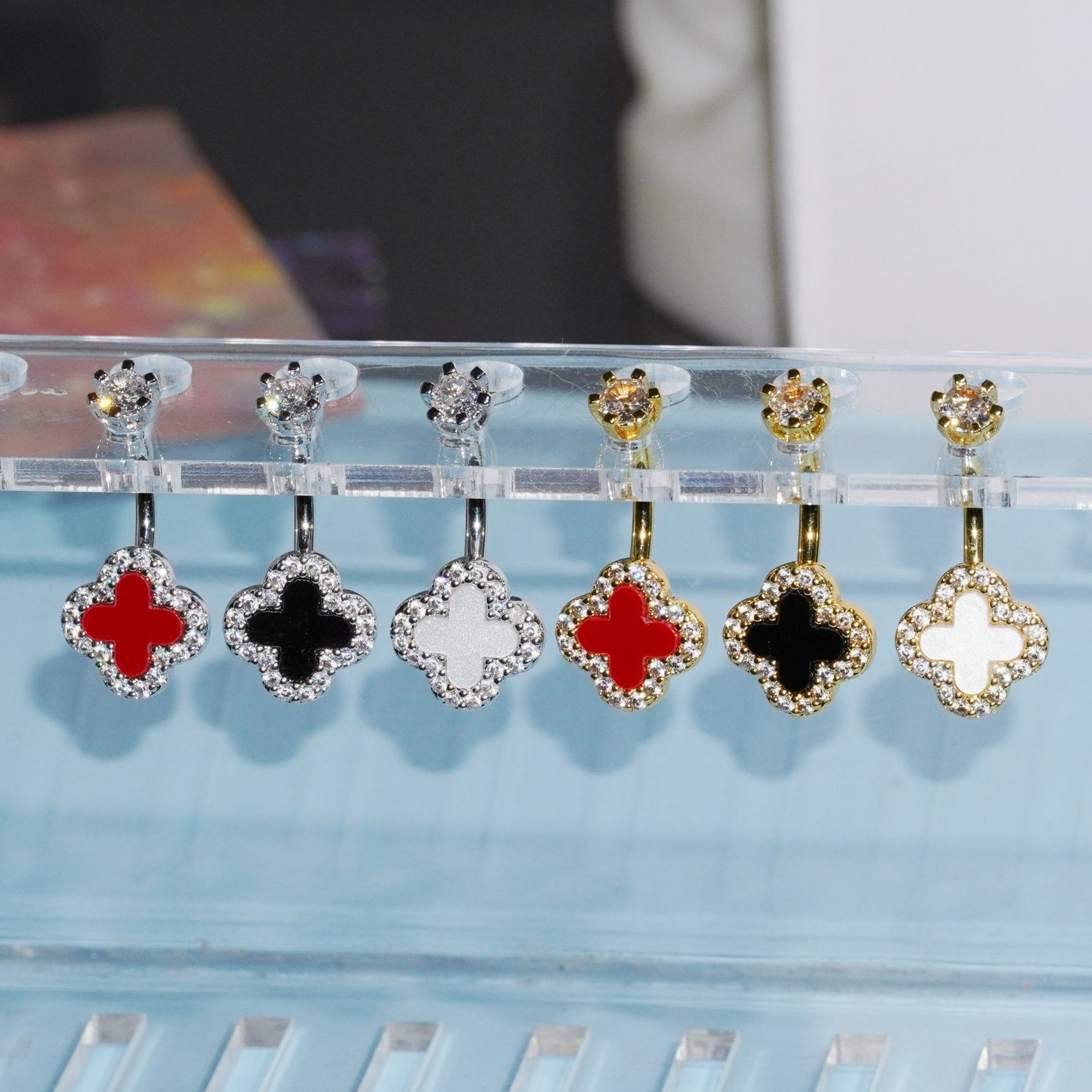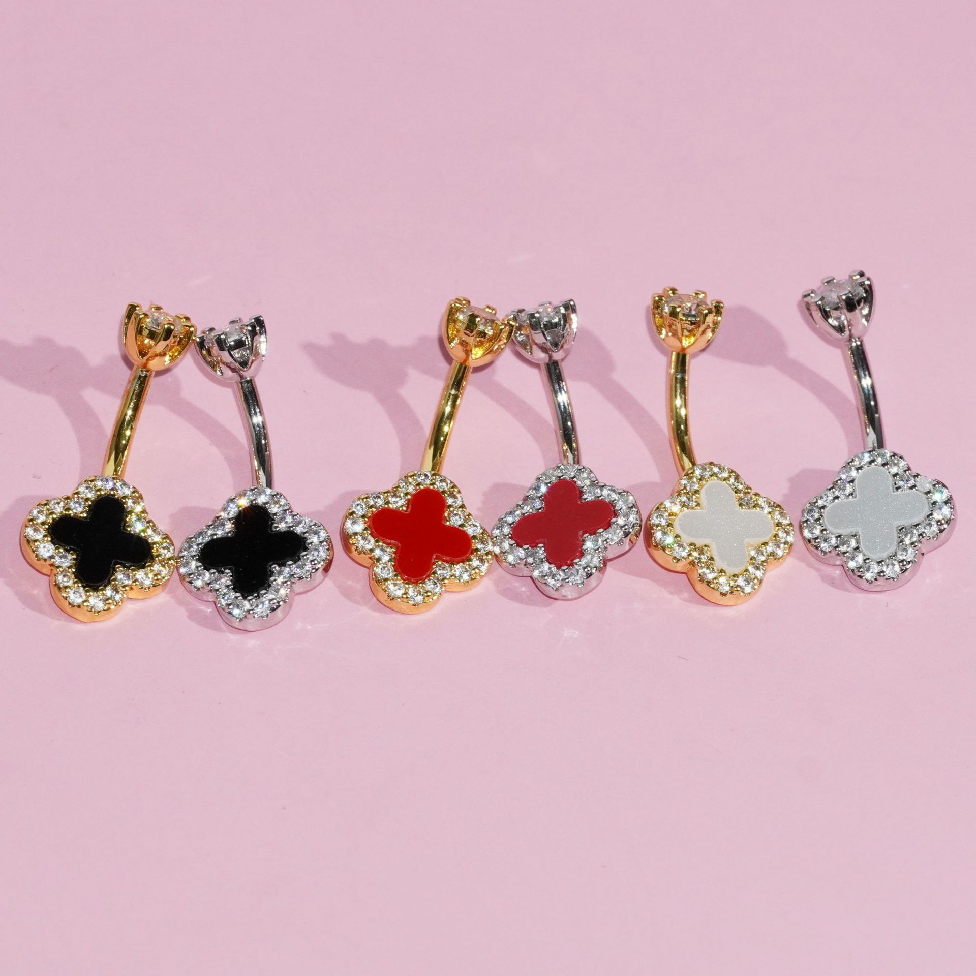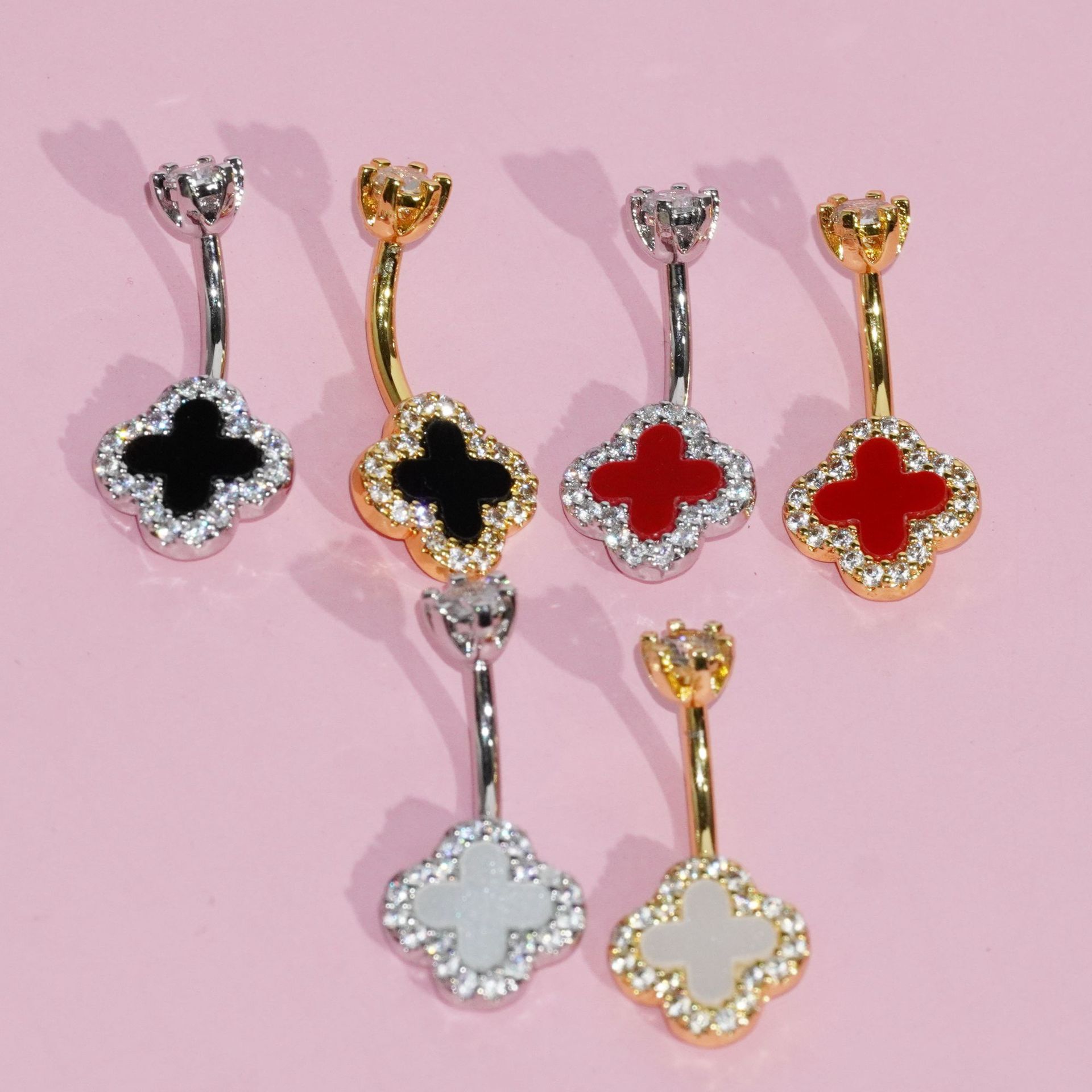 货号 三色四叶草肚脐钉