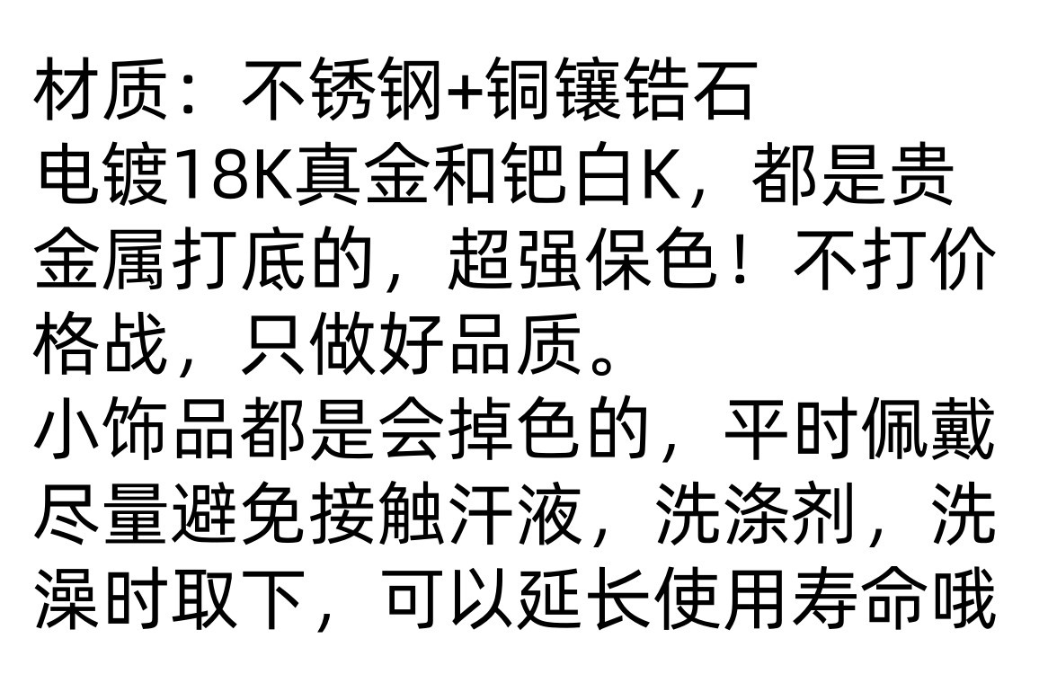颜色 钢-白色(电镀钯白k),钢-红色(电镀钯白k),钢-黑色(电镀钯白k),金-白色(电镀真金),金-红色(电镀真金),金-黑色(电镀真金)