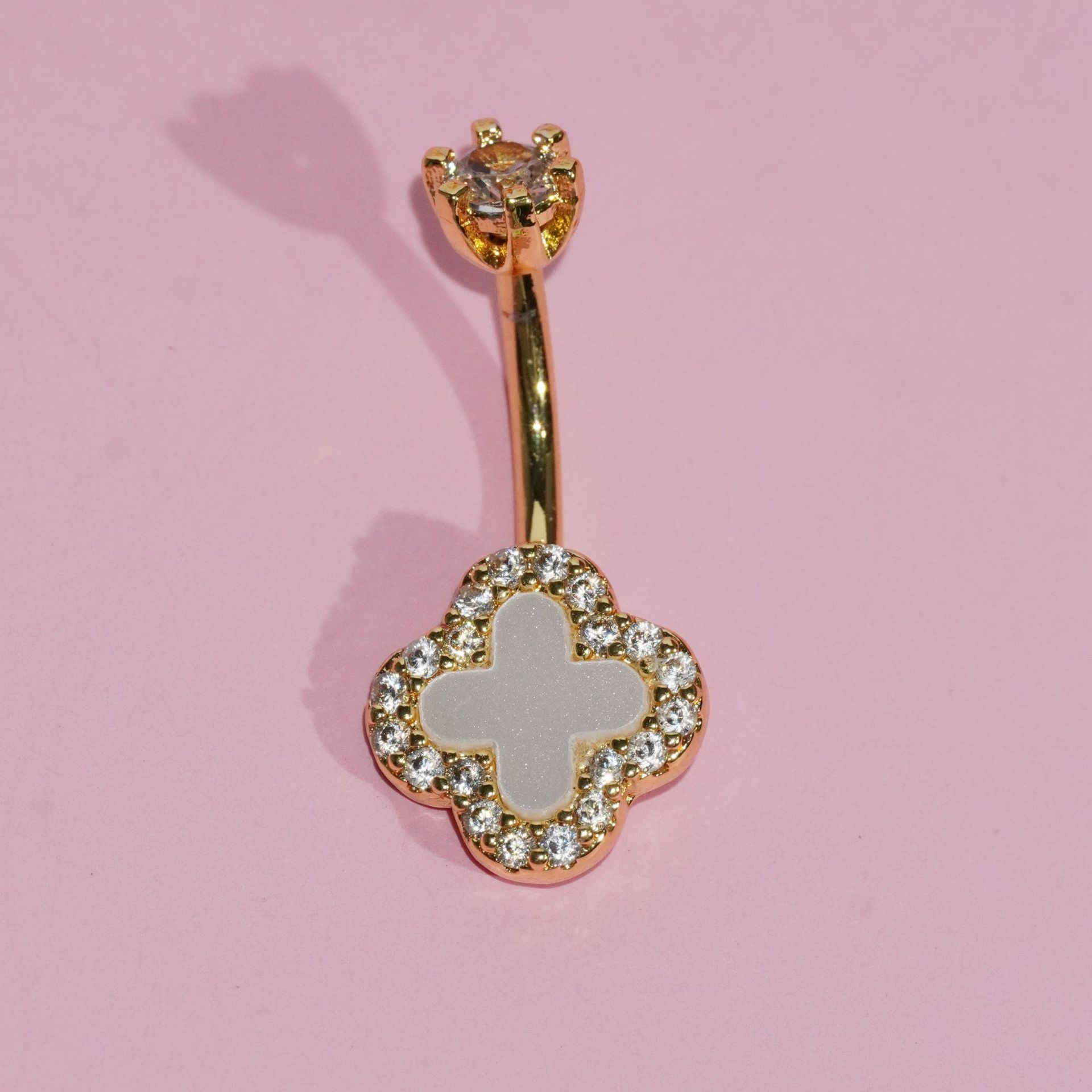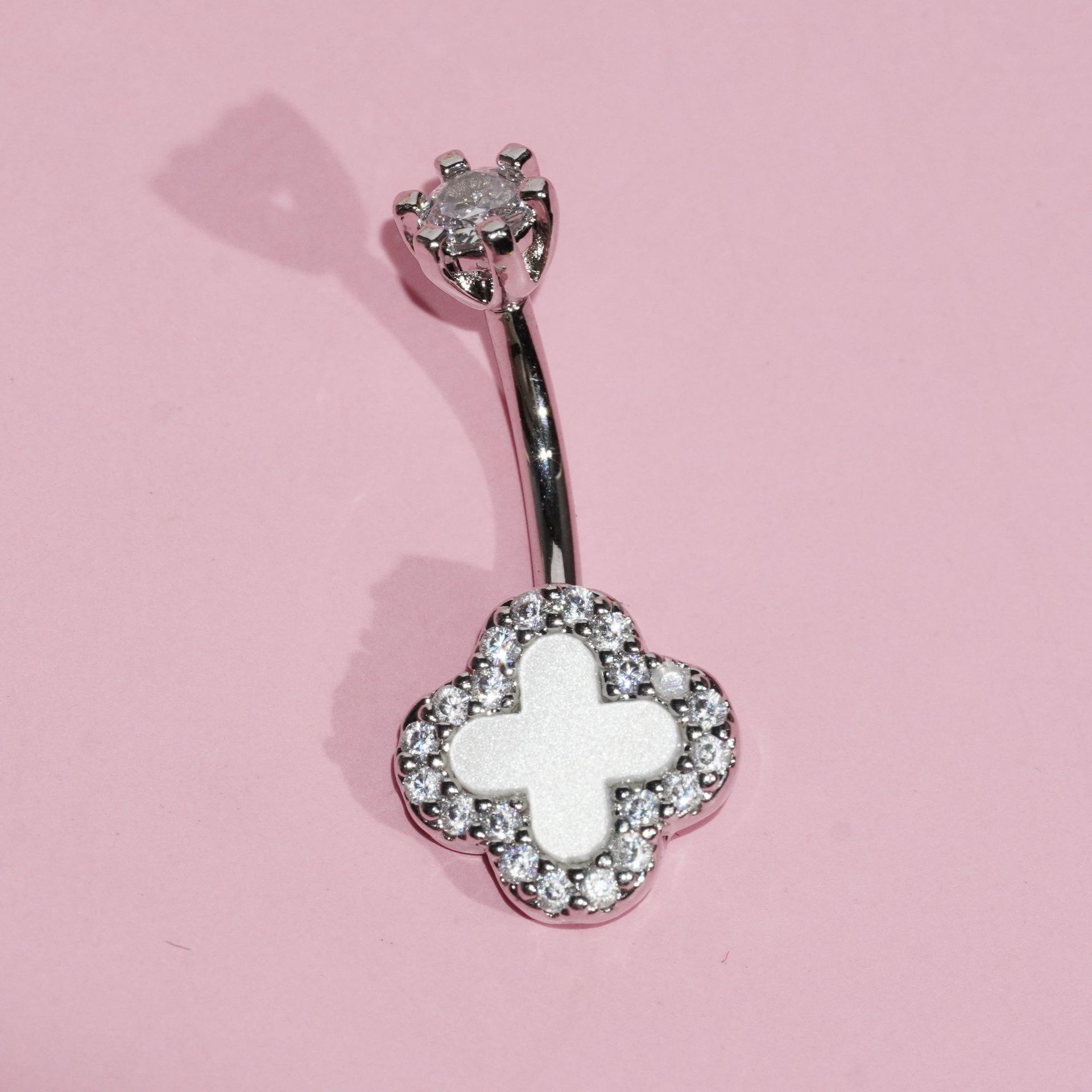 三色四叶草肚脐钉不锈钢贝母肚脐环铜镶锆石流行小众穿刺饰品批发
