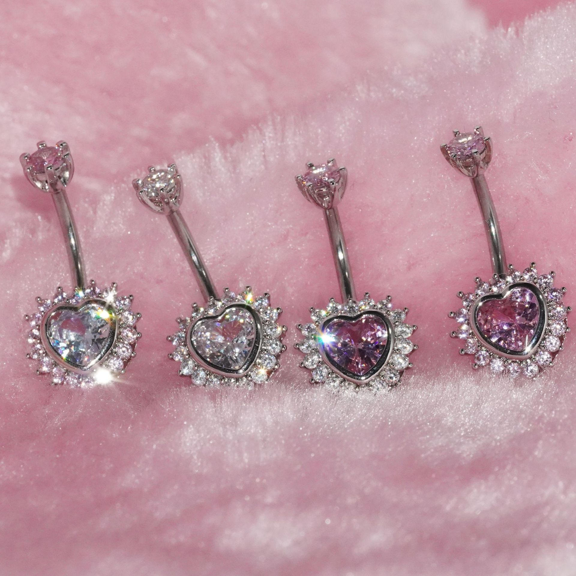 アマゾン欧米の人気ハート型ピンクジルコン臍環y2k風クロスボーダー穿刺アクセサリーオンライン卸売り