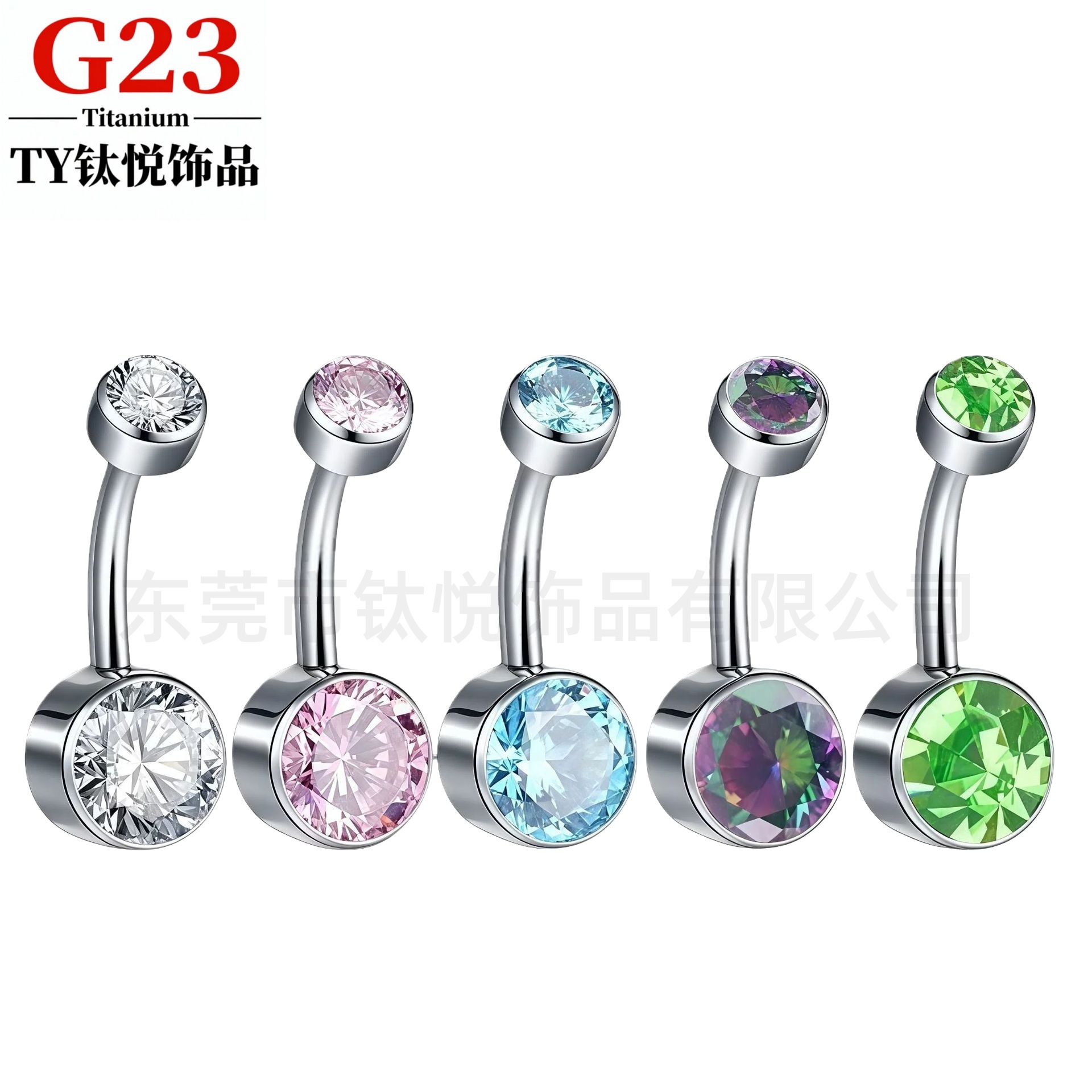 F136钛合金肚脐钉圆形锆石镶嵌澳宝锆石肚脐环内螺纹钛合金饰品