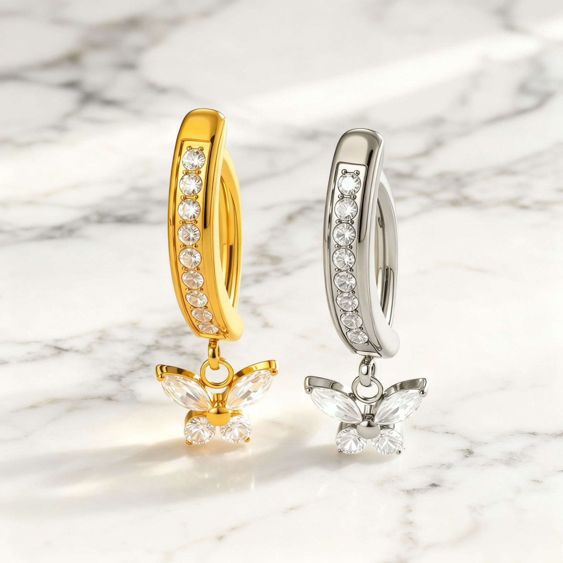 クロスボーダー新しいステンレス鋼へそバックル象嵌ジルコン蝶へそネイルへそリングヨーロッパとアメリカの貿易腹部ピアスジュエリー