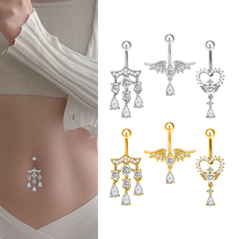 欧美热卖爱心翅膀水滴形肚脐钉时尚宫廷风锆石肚脐环穿刺饰品