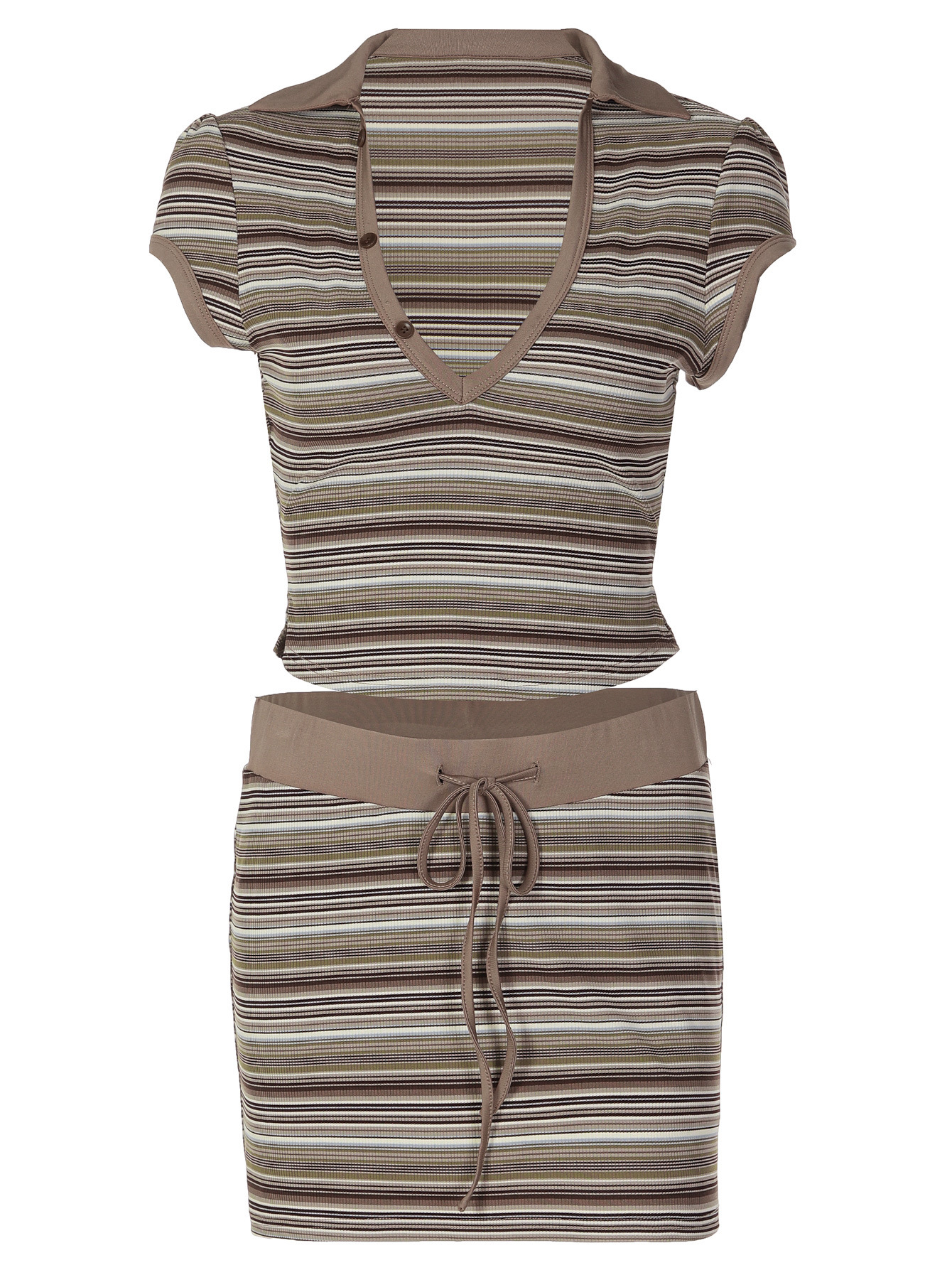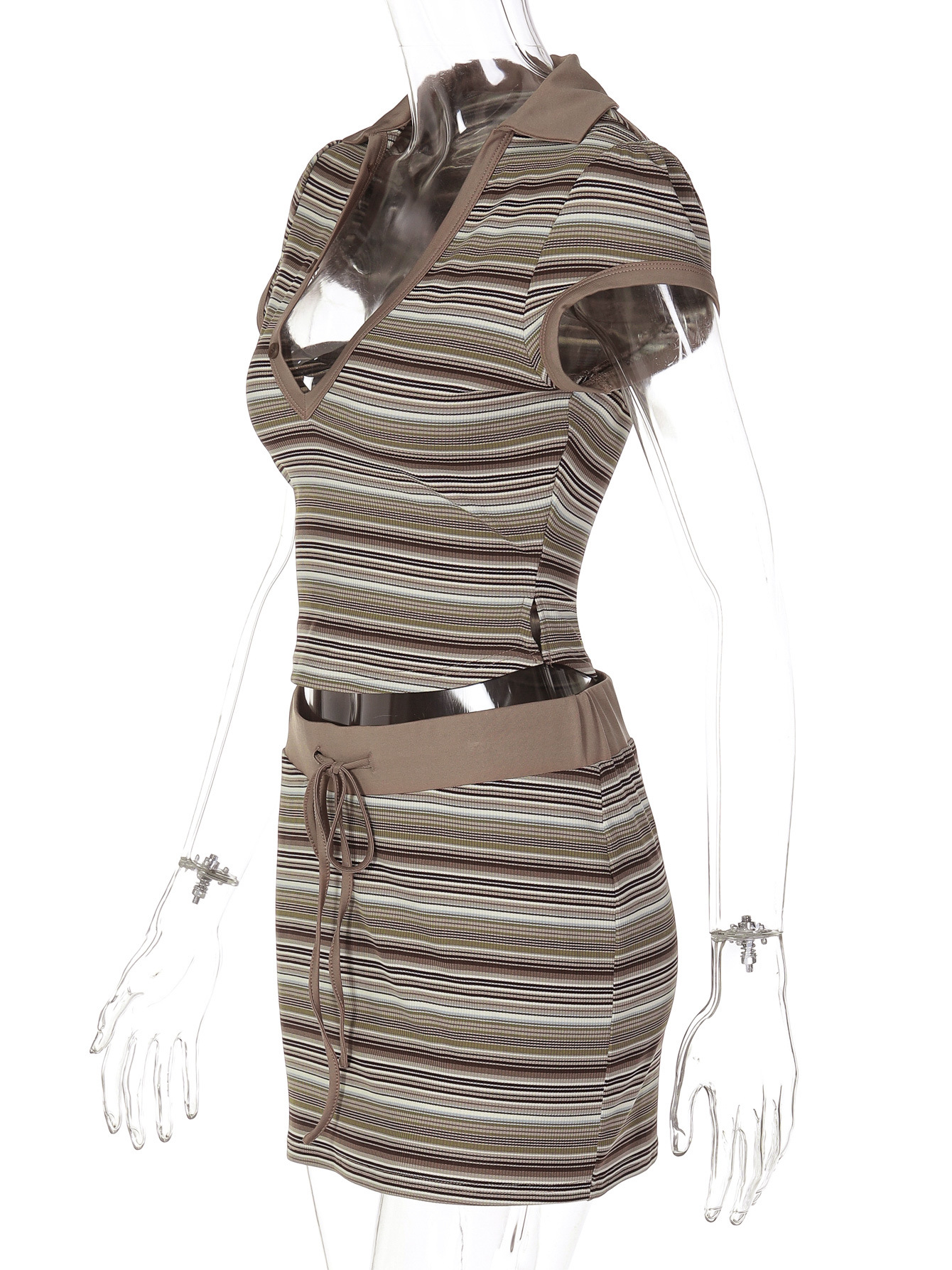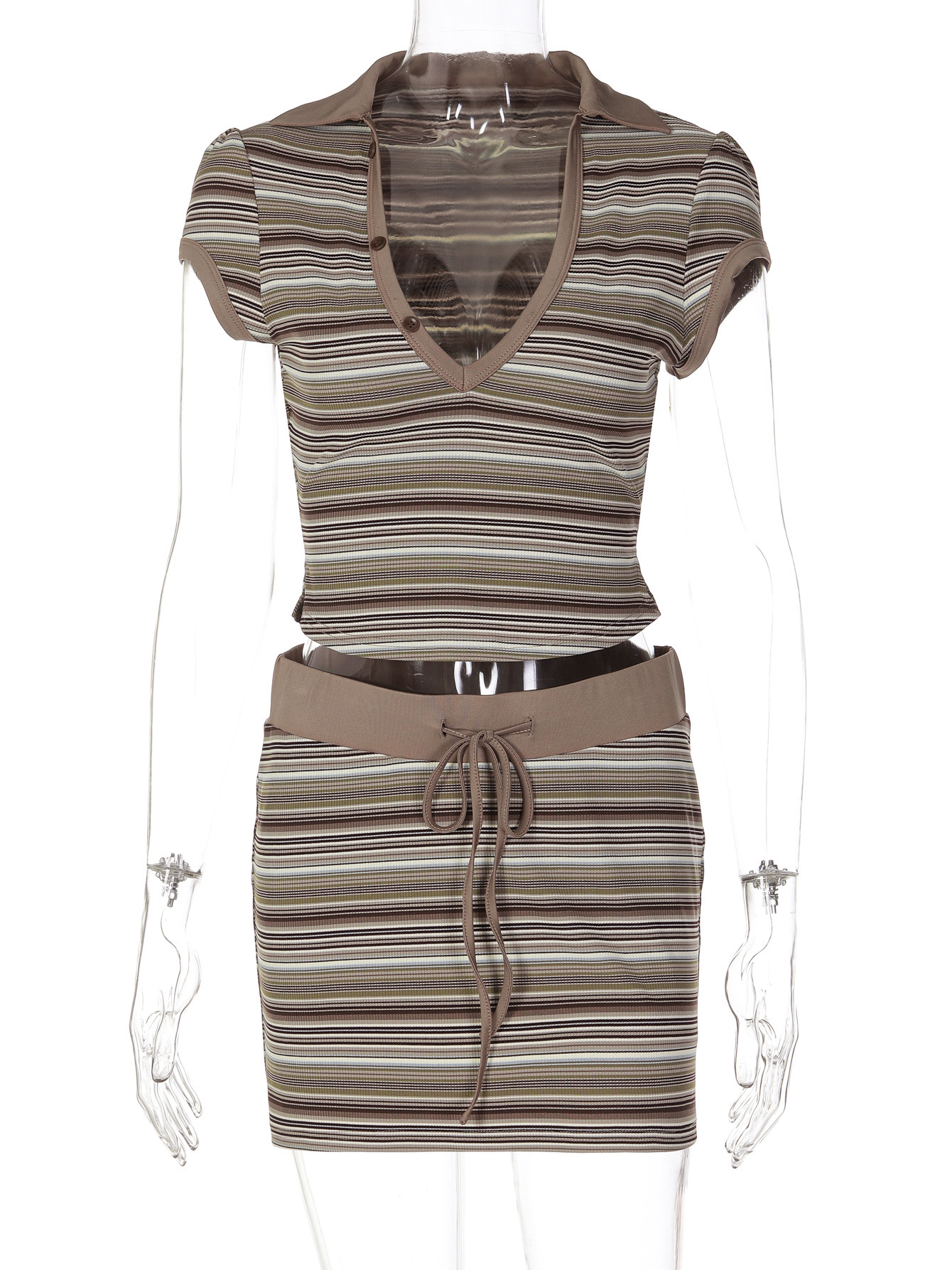 跨境欧美2025美式夏季新款条纹抹胸斜肩百搭显瘦修身包臀裙套装女