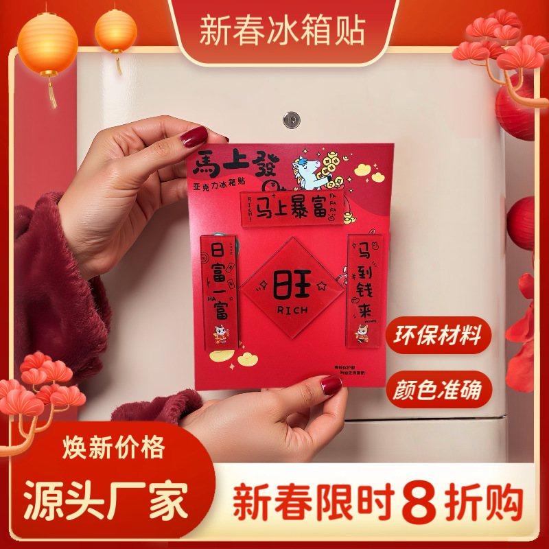 新年亚克力冰箱贴对联红色喜庆装饰冰箱贴创意个性马年磁吸冰箱贴