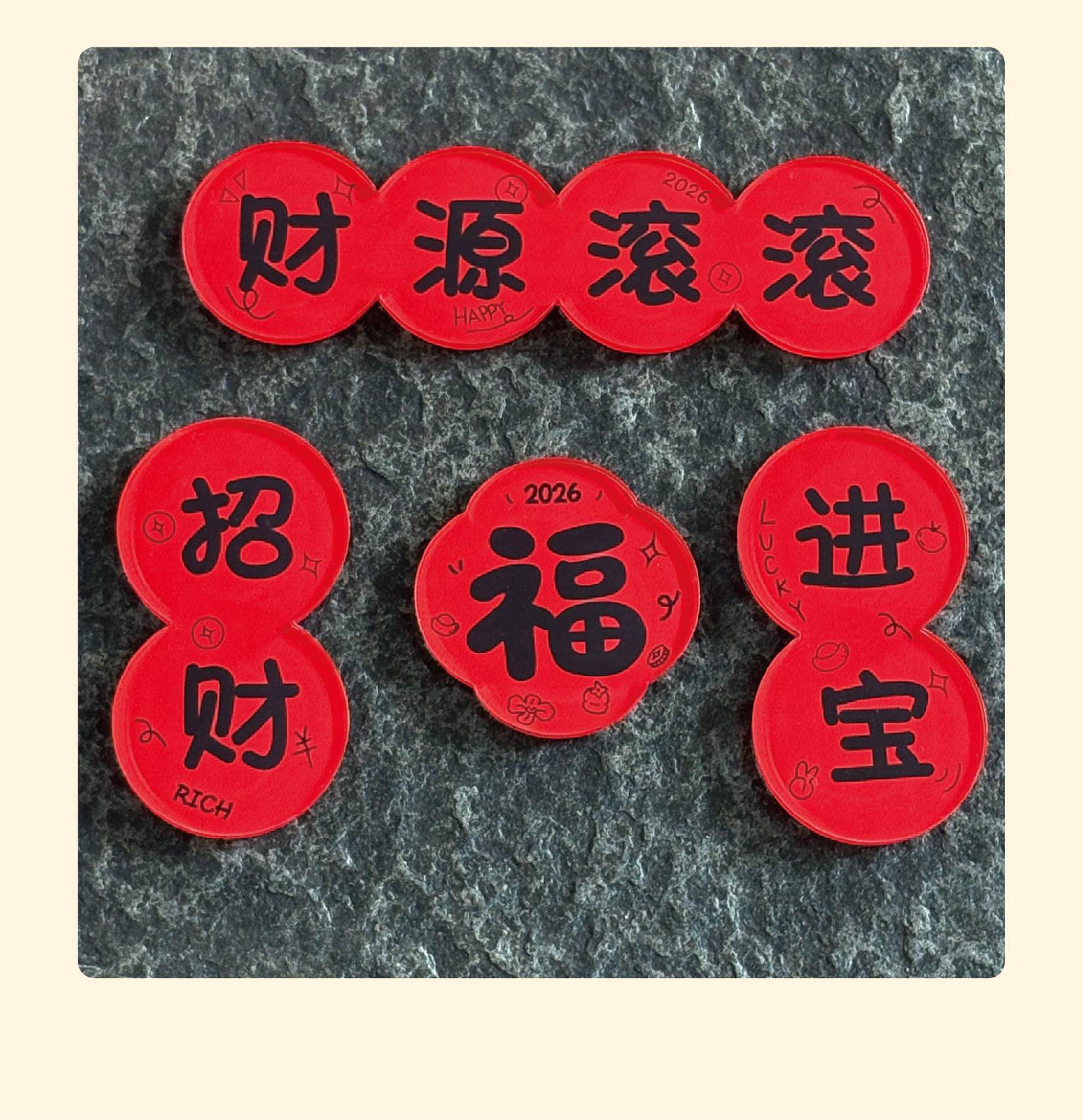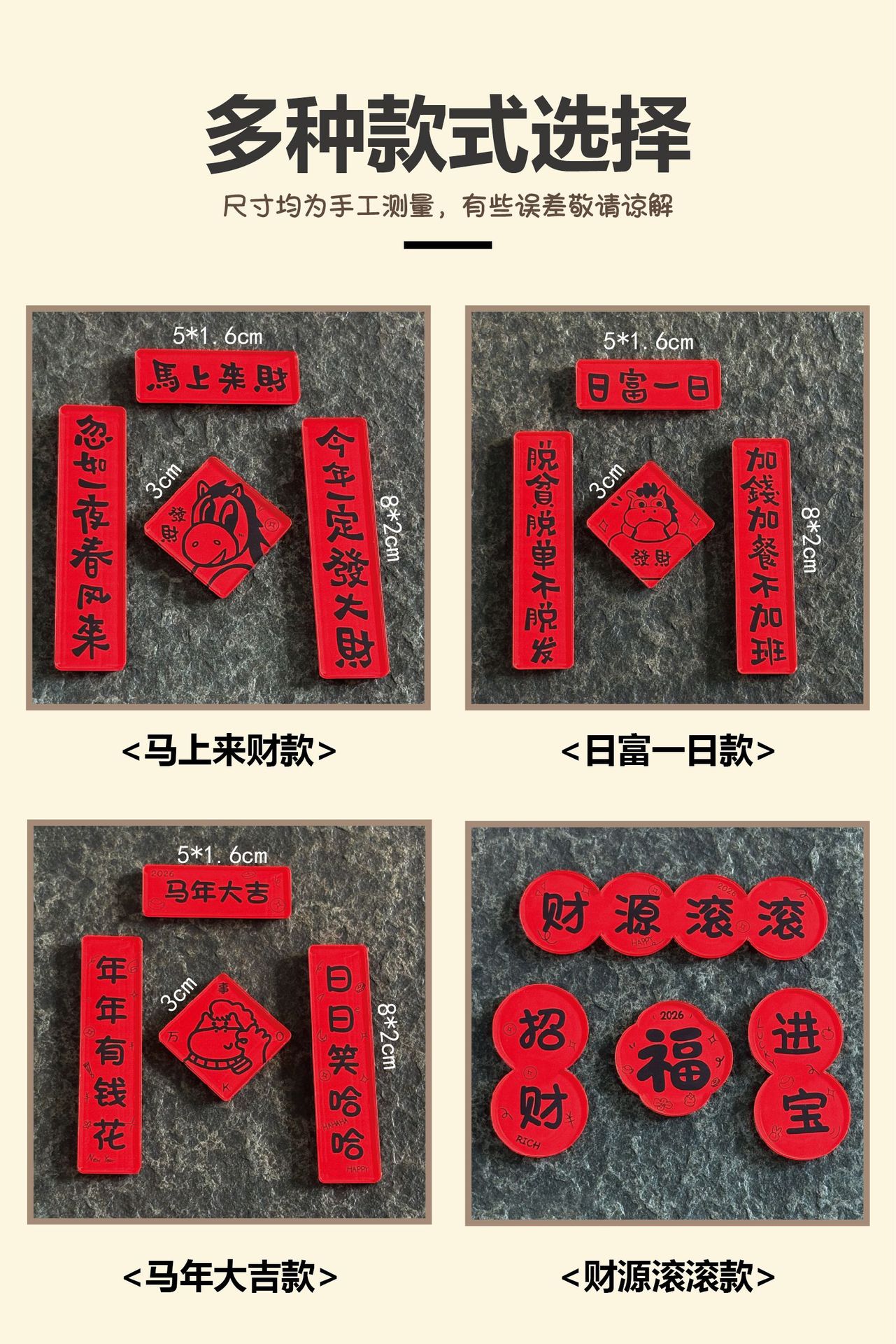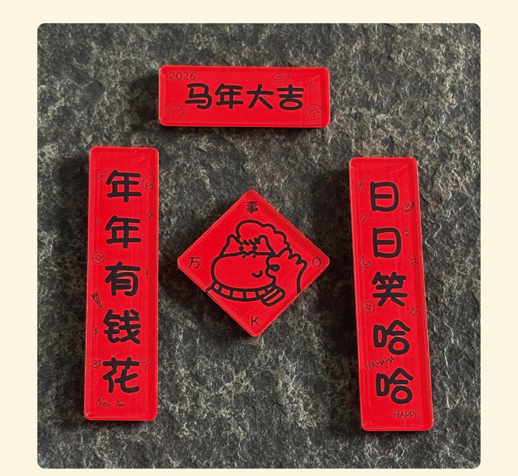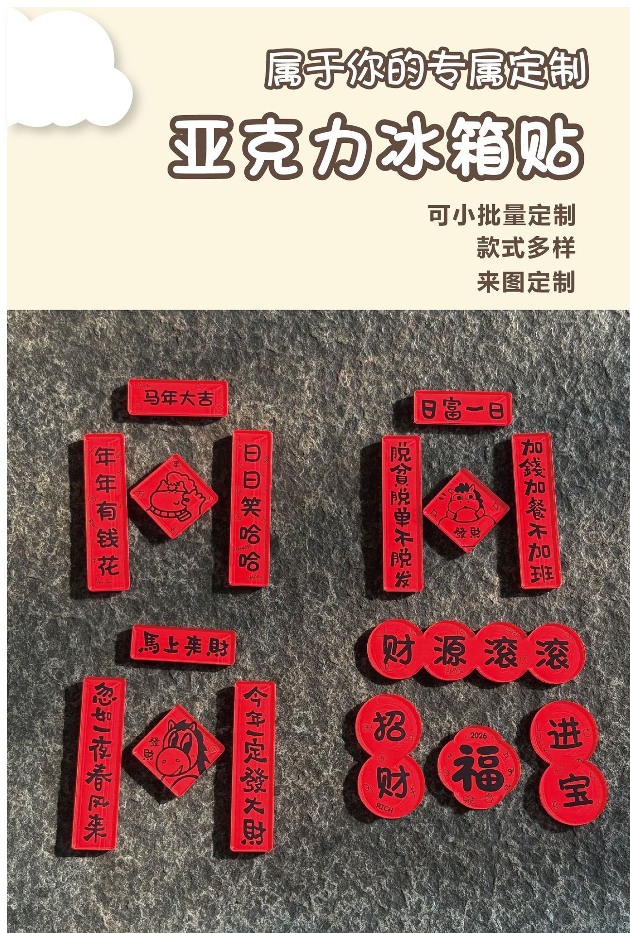2026马年春节喜庆迷你亚克力对联磁吸冰箱贴趣味福字新年装饰礼物