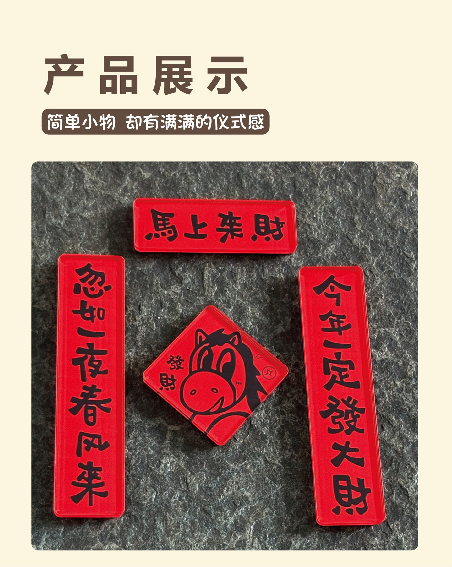 国潮马年磁吸亚克力迷你对联冰箱贴创意卡通春节装饰氛围场景布置