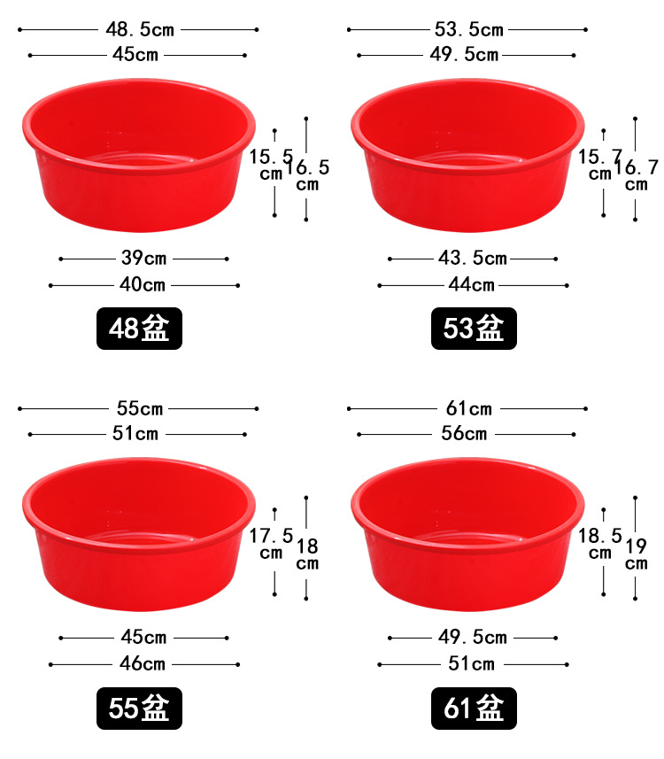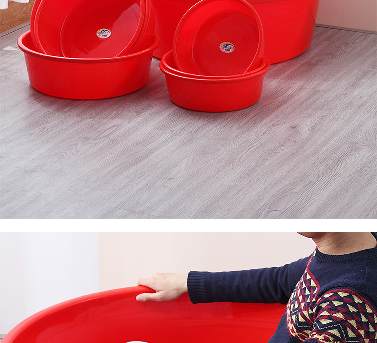加厚塑料盆家用洗脸盆红色特厚塑料大盆大号圆形洗澡盆洗衣盆熟胶