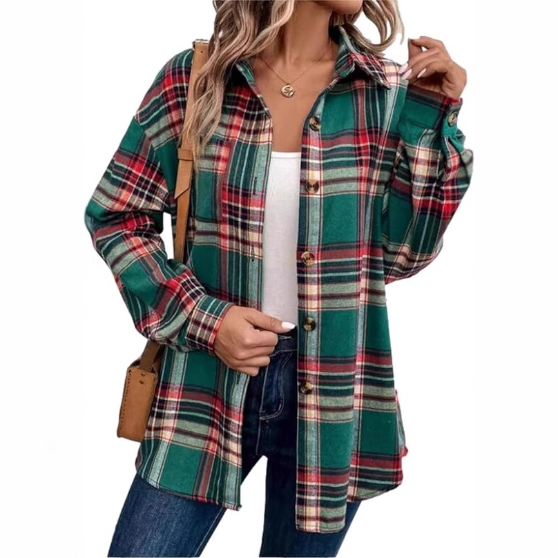 2026 秋冬跨境新款多色复古格纹衬衫 女式宽松显瘦长袖百搭上衣