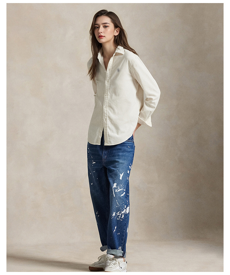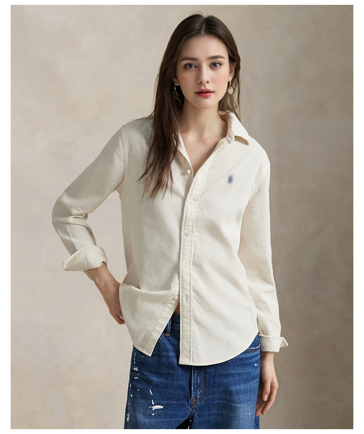 跨境拉夫秋冬小马标纯棉长袖休闲情侣上衣刺绣衬衫女灯芯绒开衫