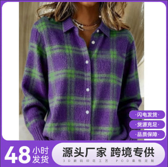 2026外贸跨境亚马逊速卖通热销格子衬衫印花休闲宽松 衬衫外套