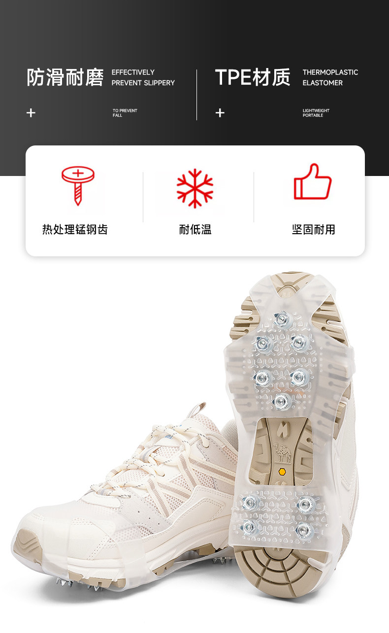 冰爪防滑鞋套雪地10齿加固鞋钉冰上滑雪路面防摔冰爪户外登山装备