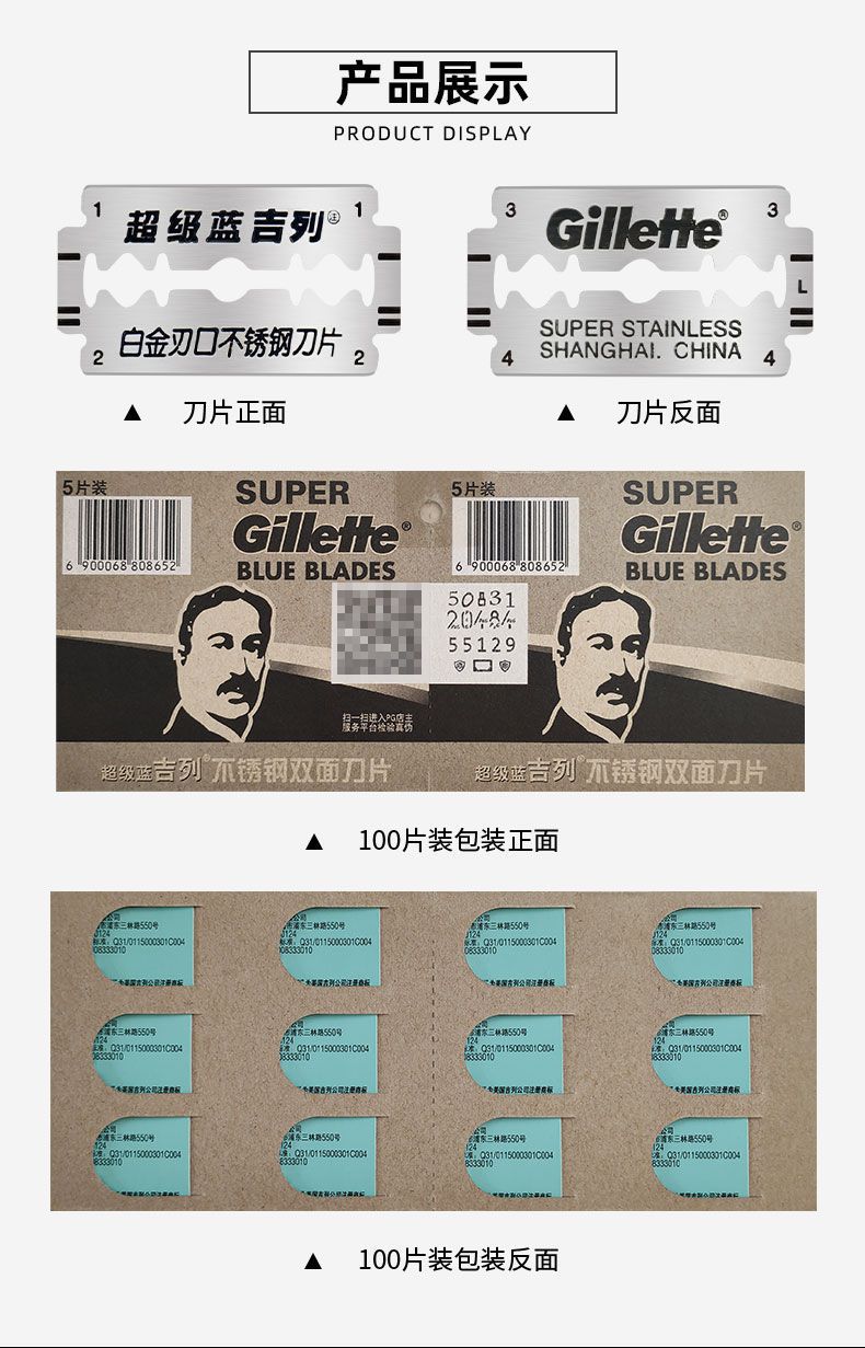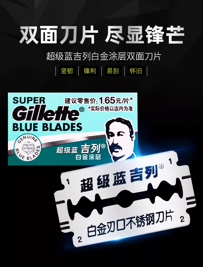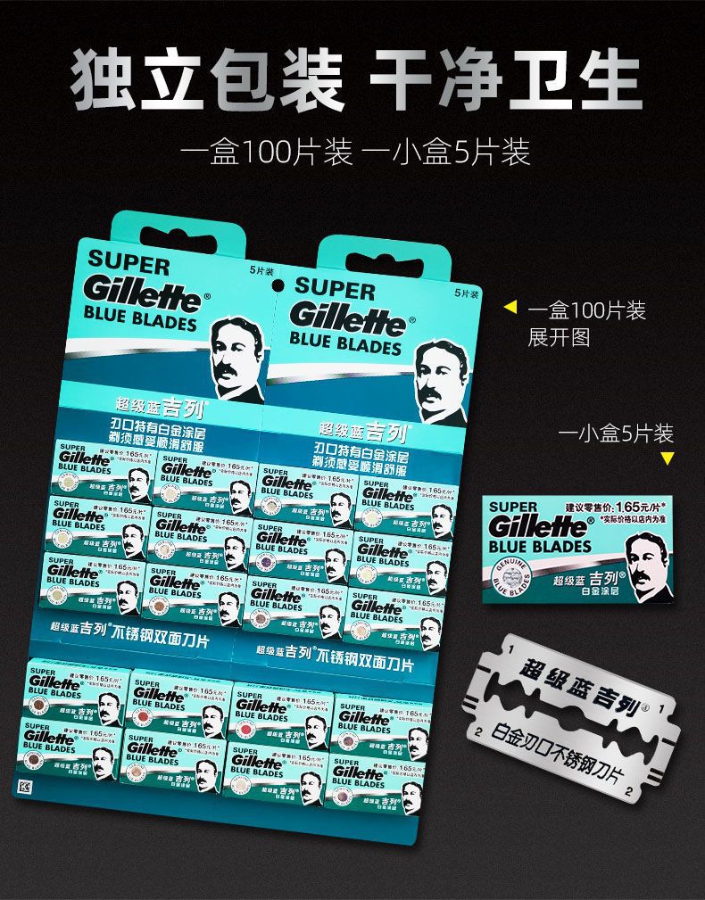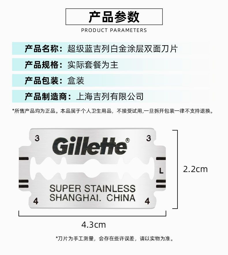 吉列蓝吉列不锈钢双面刀片100片手动可水洗刮胡刀片
