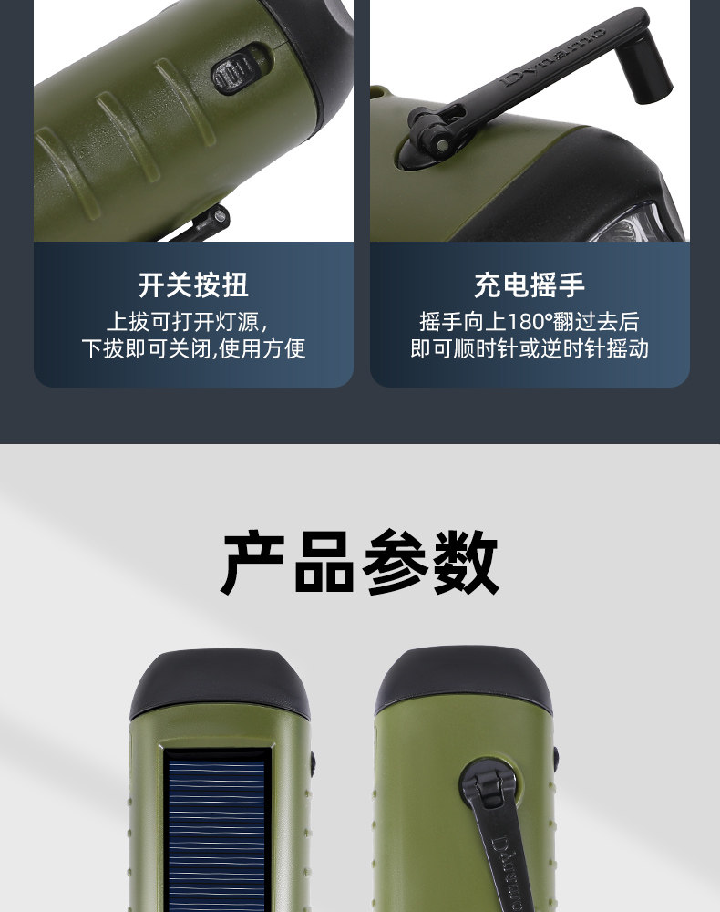 户外便携强光手电筒长续航太阳能充电款手摇发电LED应急手电筒
