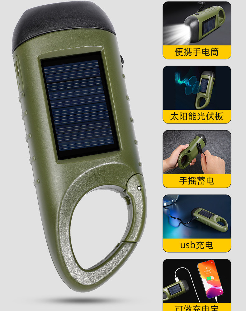 手电筒充电手摇太阳能强光便携超亮家用迷你led灯多功能小型手灯